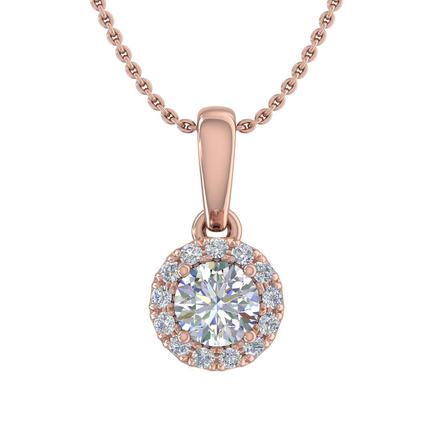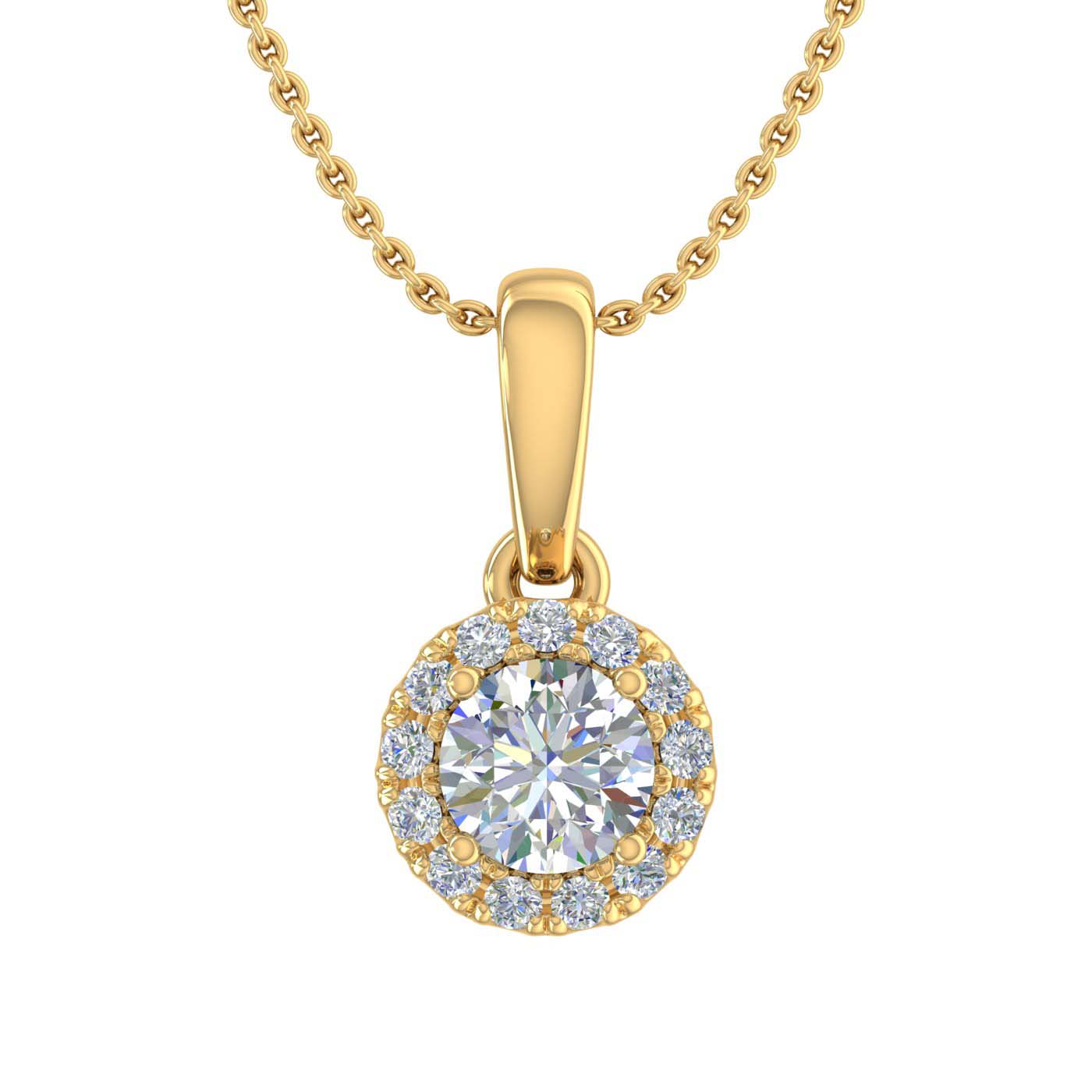 1/3 Carat Diamond Halo Pendant Necklace in Gold (Silver Cable Chain) - IGI Certified