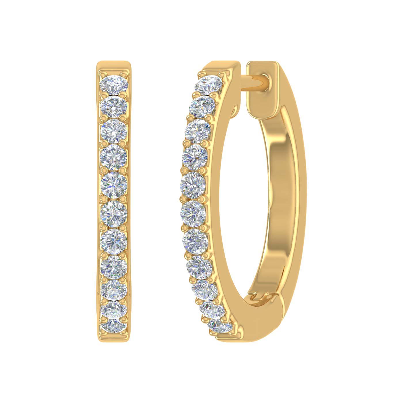 Your search for the perfect hoop earrings ends here. These hoop earrings are set in 14K gold and embedded with IGI certified 1/3 carat icy white round diamonds. Simple yet elegant this beautiful pair of hoop earrings is a must have piece of jewelry for every women.