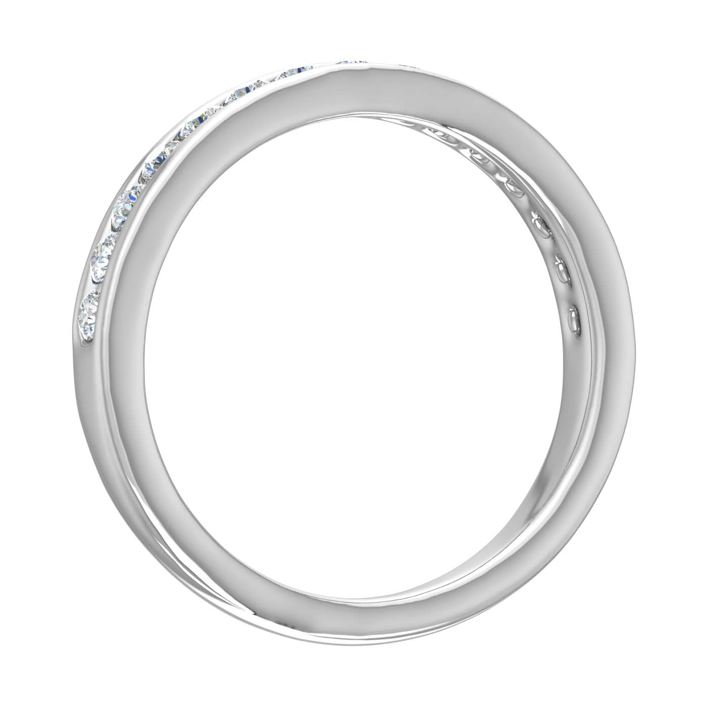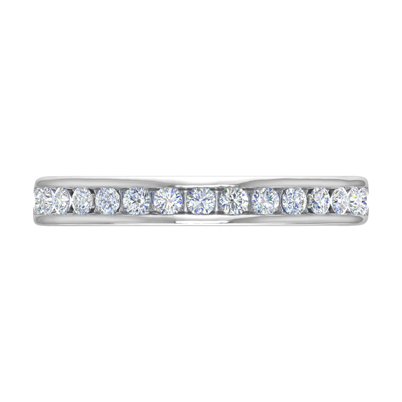 Get ready to be stunned with this majestic diamond wedding band ring. Formed in 14K gold this ring is enhanced with Channel set white diamonds of 1/3 Carat weight and it emits a shine of its own which increase the grandeur of the wearer's outfit.