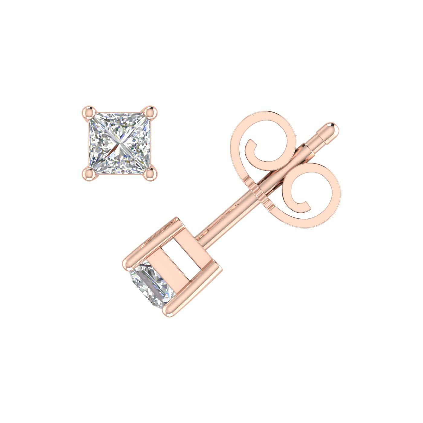 1/3 Carat Princess Cut Diamond Stud Earrings in Gold