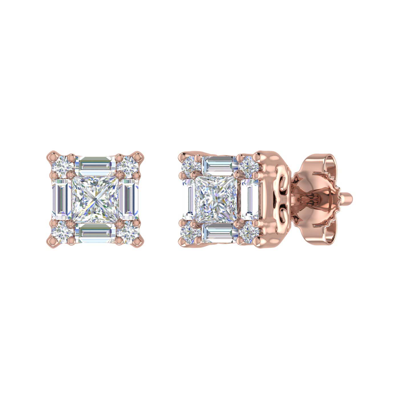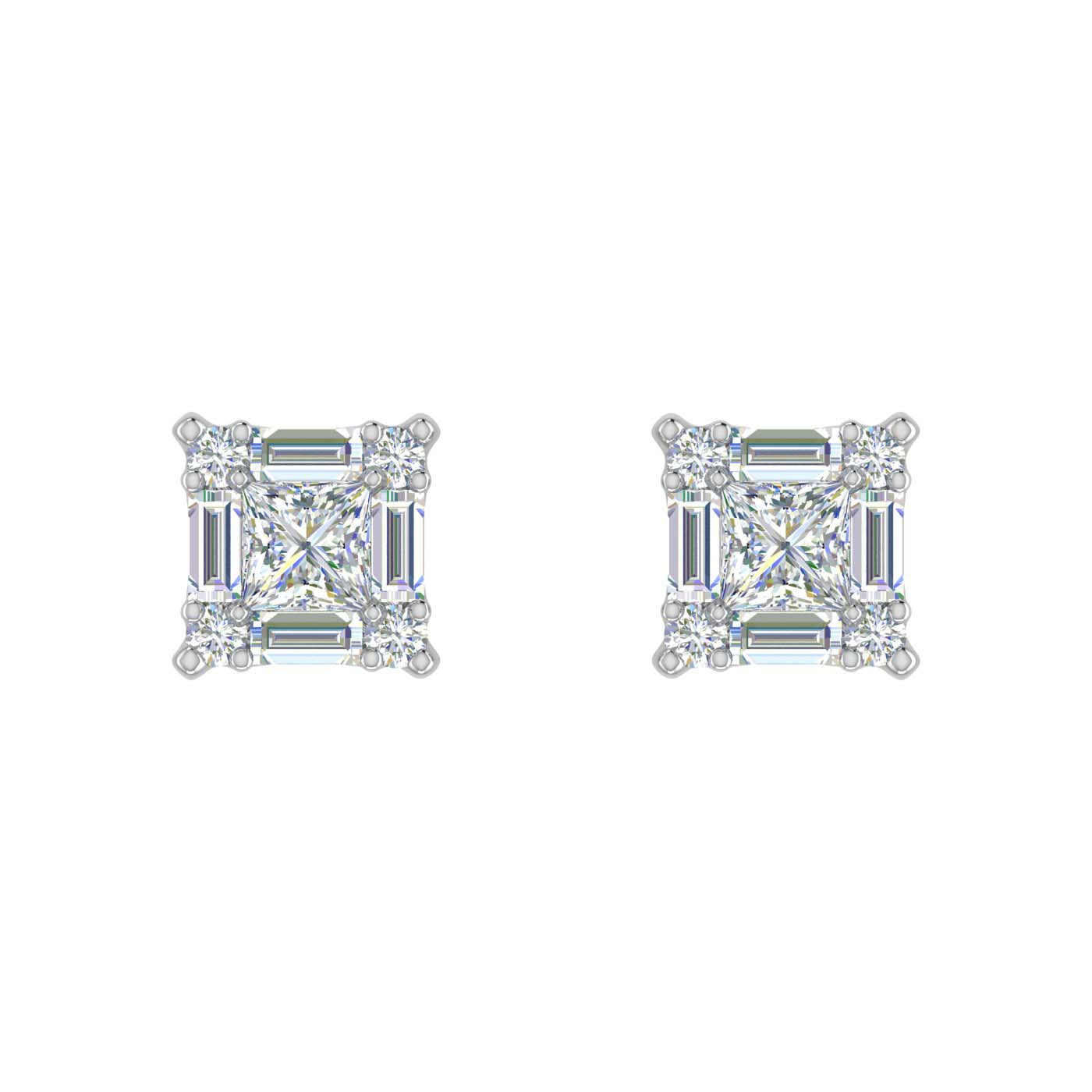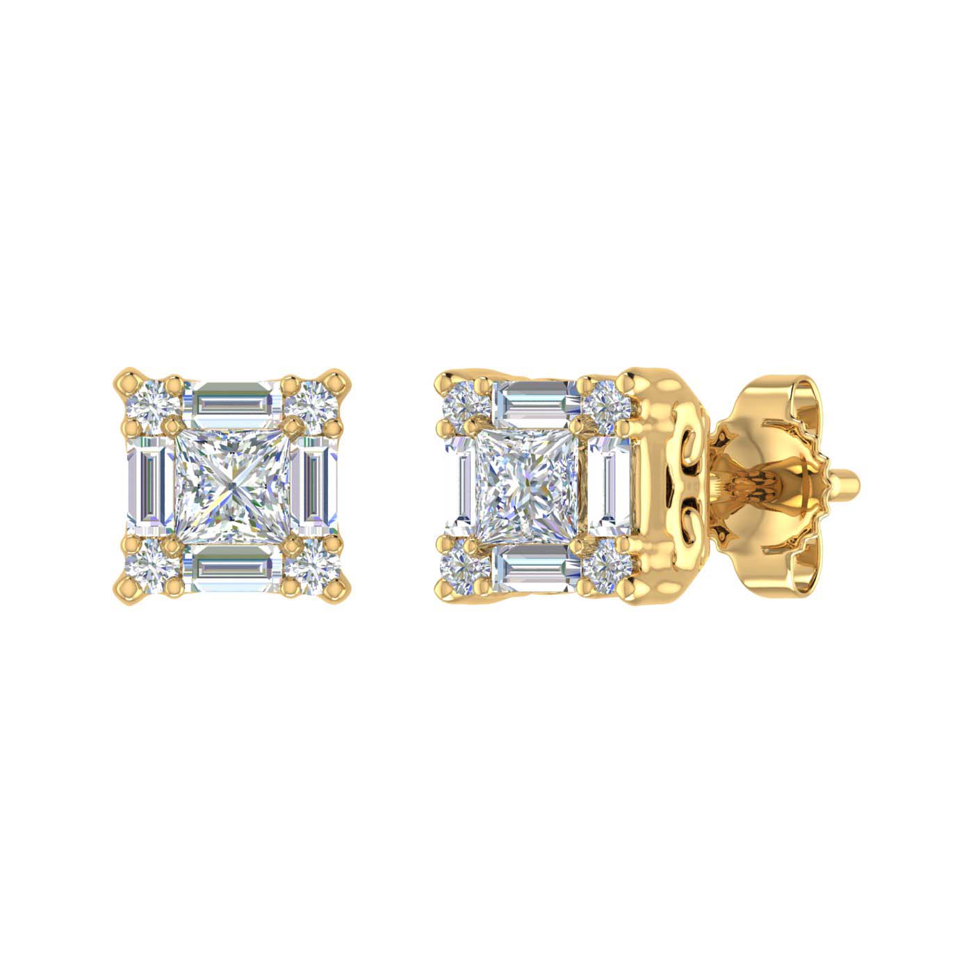 1/3 Carat Prong Set Round, Princess & Baguette Shape Diamond Stud Earrings in Gold