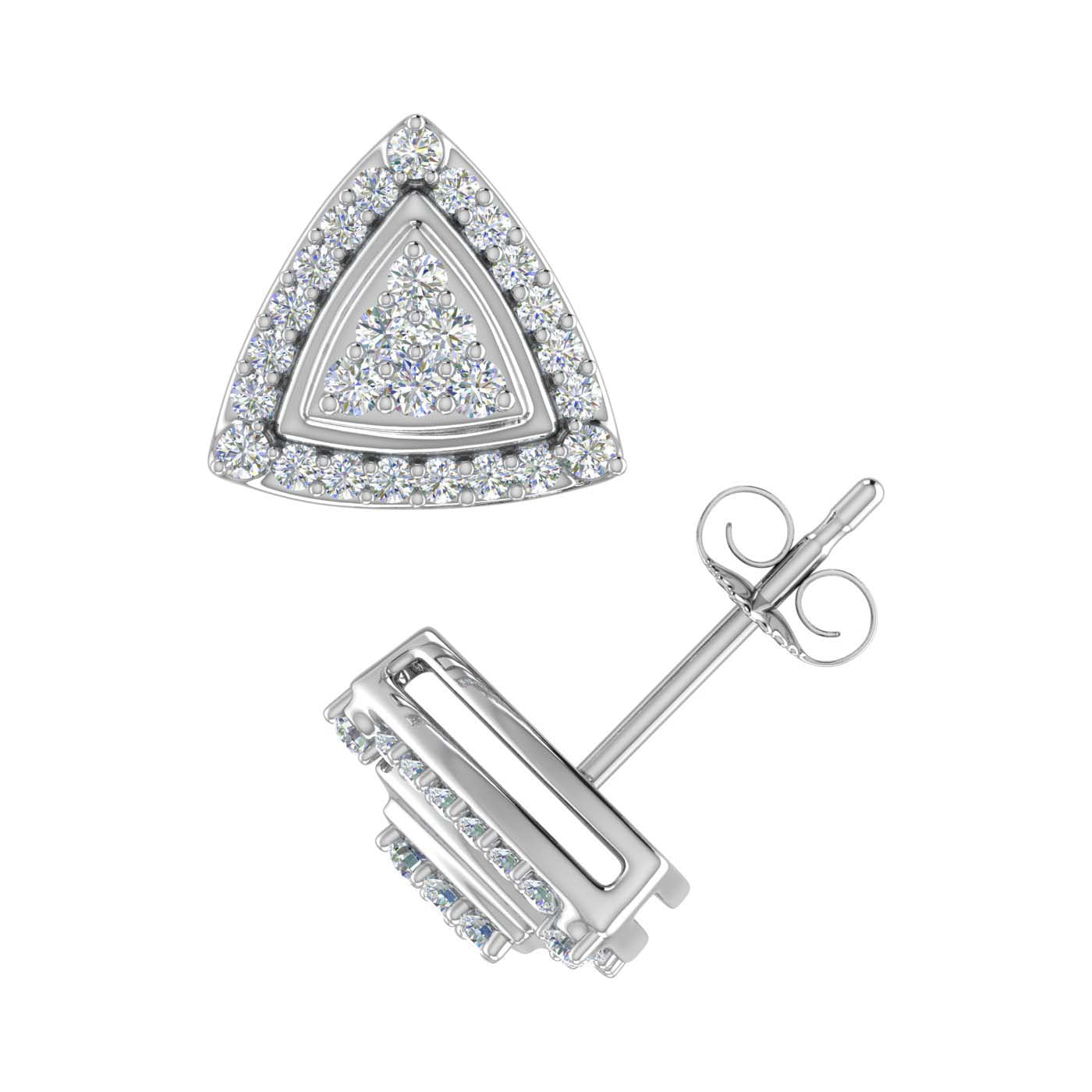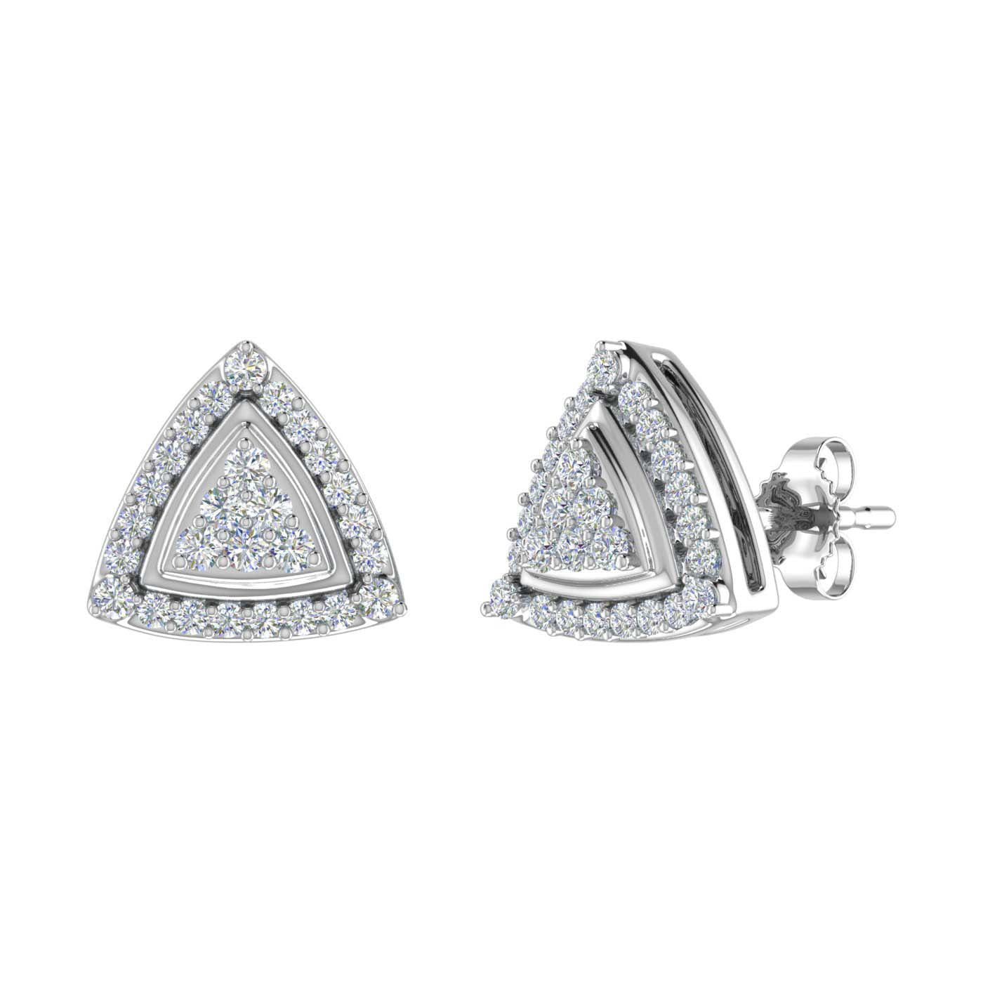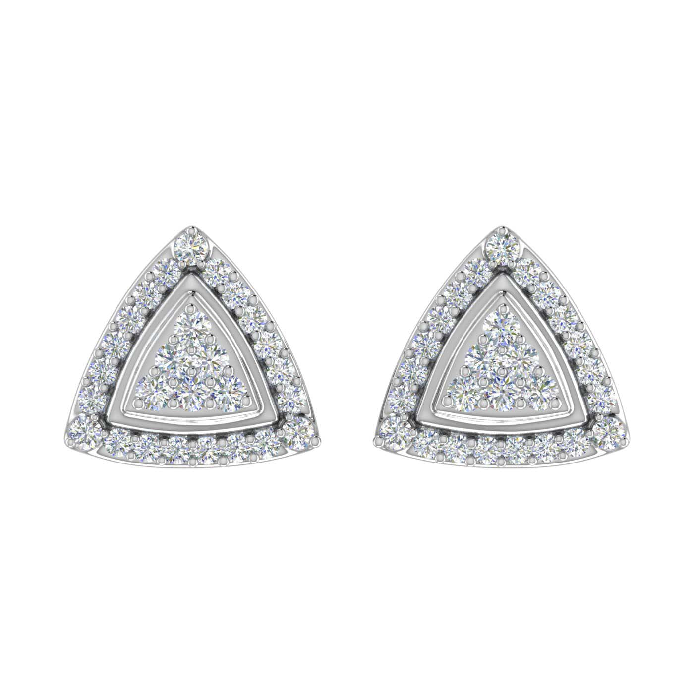 These prong set triangel shaped stud earrings are a perfect example of the modern fashion trends. Beautifully rendered in 14K gold, It features with white diamonds of 1/3 carat weight. These earrings are one of the most gracious pieces of jewelry and come along an IGI Certificate for authenticity.