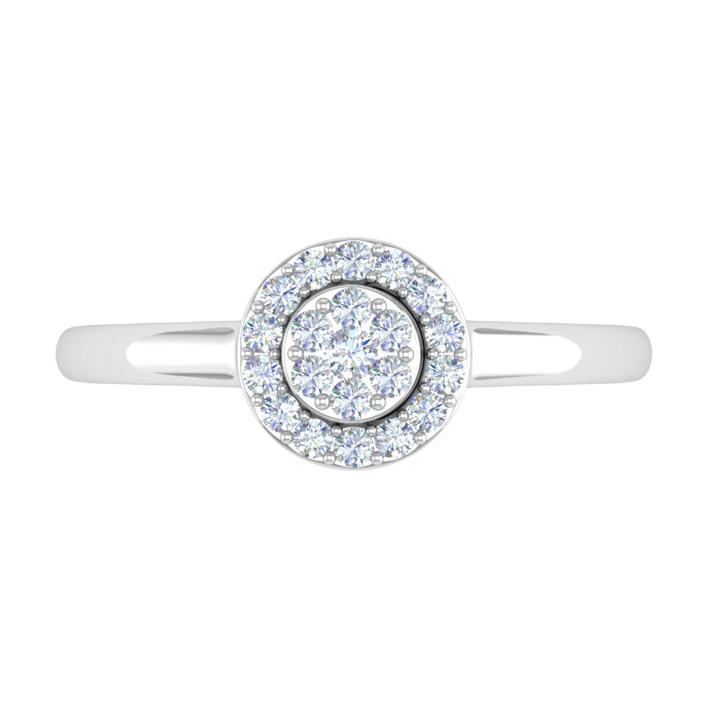 This beautiful cluster diamond ring is a result of class apart craftsmanship. Forged in 14K Gold and encrusted with white diamonds that weighs 1/4 carat in weight. This ring will grace your fingers with its beauty and make her feel special.