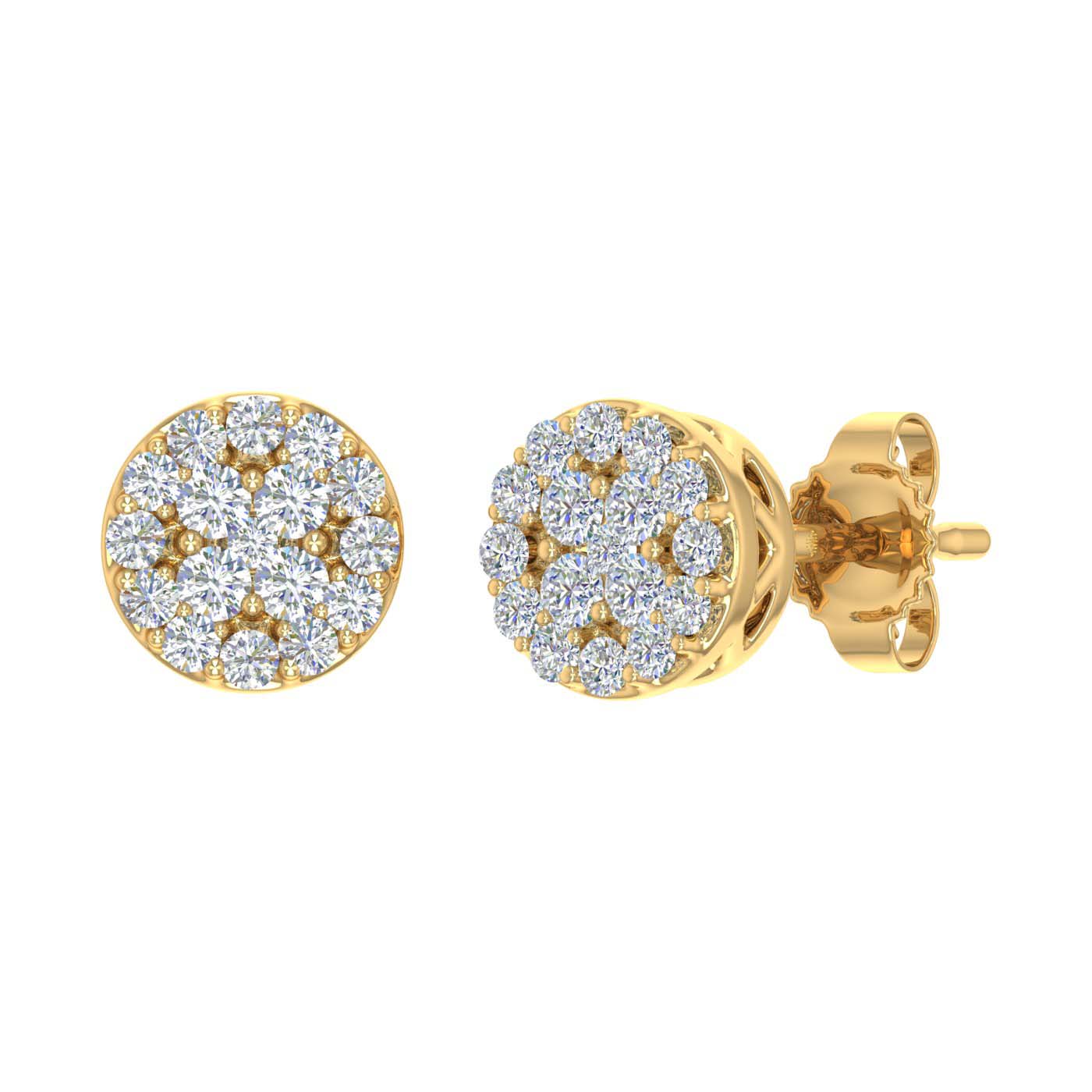 1/4 Carat Cluster Diamond Stud Earrings in Gold - IGI Certified