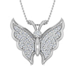 Make everyone awestruck with this beautiful butterfly pendant necklace. Made in 14k gold this pendant features 43 bright white diamonds of 1/4 carat weight and secured in bezel and pave setting, it dangles with a silver chain. Replicate the beauty of a butterfly in your jewelry collection with this pendant necklace.