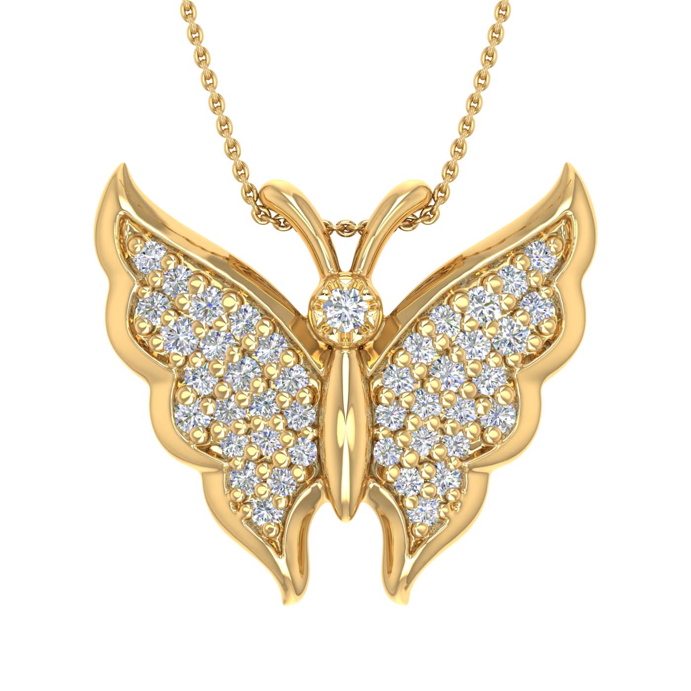 1/4 Carat Diamond Butterfly Pendant Necklace in Gold (Silver Chain Included) - IGI Certified
