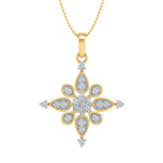 This beautiful floral pendant is forged into 14K gold with 1/4 carat white diamond. The Fashion pendant is a mesmerizing piece of diamond jewelry to be gifted to your loved one. This pendant comes dangling with a beautiful silver chain.