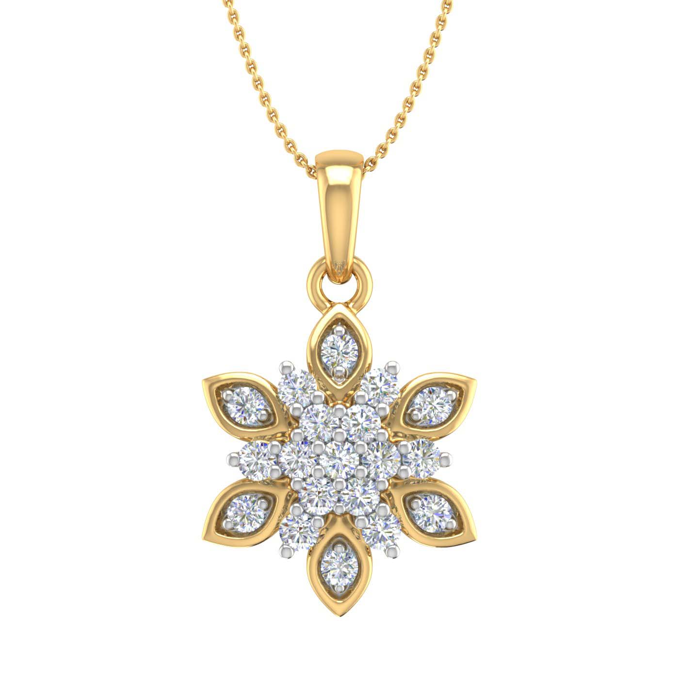 This glamorous and stunning diamond Floral Cluster pendant necklace is beautifully made in lustrous 14K gold and embedded with sparkling icy white diamonds of 1/4 carat weight. The beautiful design and craftsmanship of the pendant makes it look alluring and captivating. It comes with a silver chain.