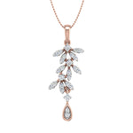 This beautiful floral drop pendant is forged into 14K gold with 1/4 carat white diamond. The pendant is a mesmerizing piece of diamond jewelry to be gifted to your loved one. This pendant comes dangling with a beautiful silver chain.