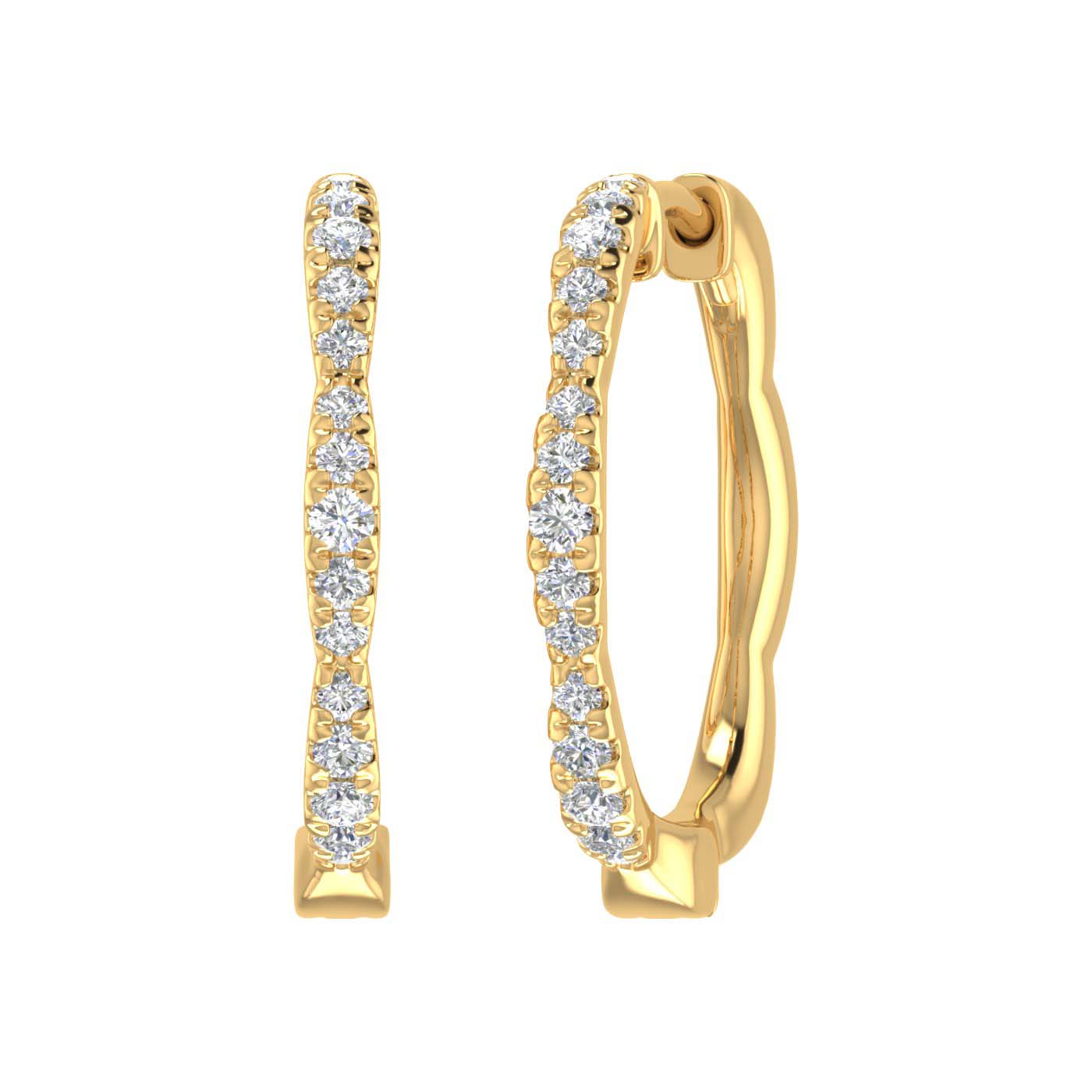 Classic and timeless, these hoops are handcrafted in 14K gold and features 30 round diamonds of 1/4 carat set in prong setting. An amazing piece of jewelry that you can wear every day. These comfortable, hoop earrings come with a hinge back. The diamonds used in it are IGI certified natural and conflict-free diamonds which adds to its beauty. These earrings are perfect for your daily use.