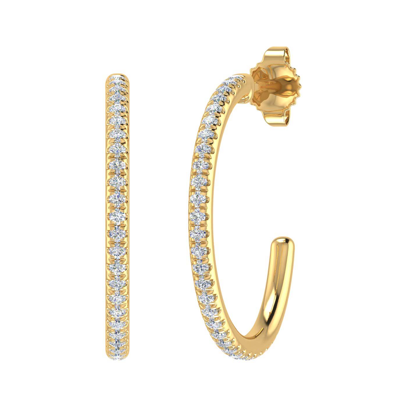 Be it a party or a formal dinner, diamond half hoop are the best option of jewelry that can be used. Made in 14K gold these half hoop are studded with prong set diamonds of 1/4 carat weight. Add a pinch of simplicity to your look with these diamond half hoop earrings.