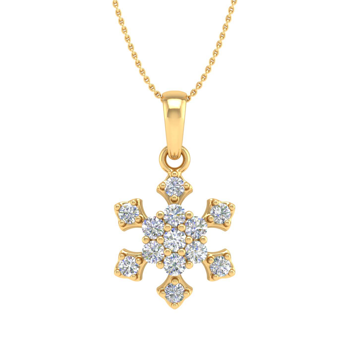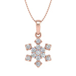 This elegant snowflake diamond pendant is gorgeously rendered in lustrous 14K gold with dazzling icy white diamonds of 1/4 carat weight and secured in prong setting. It dangles beautifully from a silver cable chain. The greatest gift for yourself and your loved one.