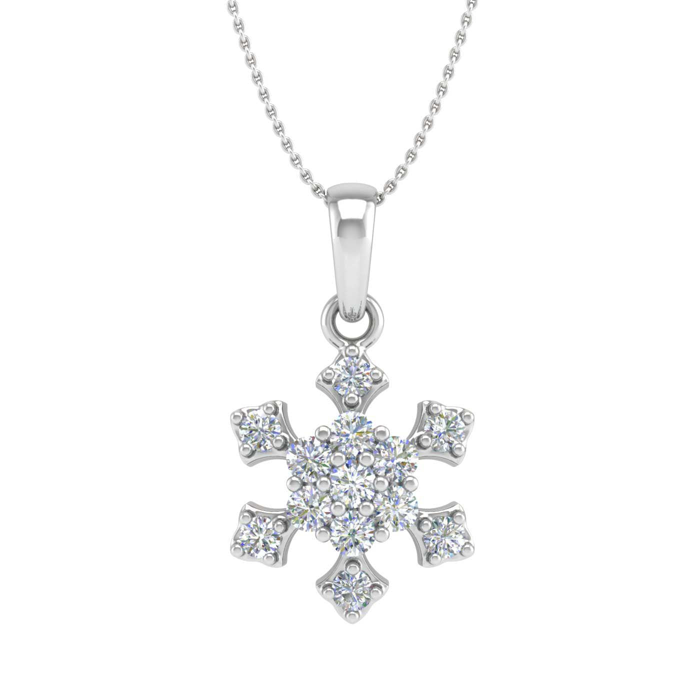 This elegant snowflake diamond pendant is gorgeously rendered in lustrous 14K gold with dazzling icy white diamonds of 1/4 carat weight and secured in prong setting. It dangles beautifully from a silver cable chain. The greatest gift for yourself and your loved one.