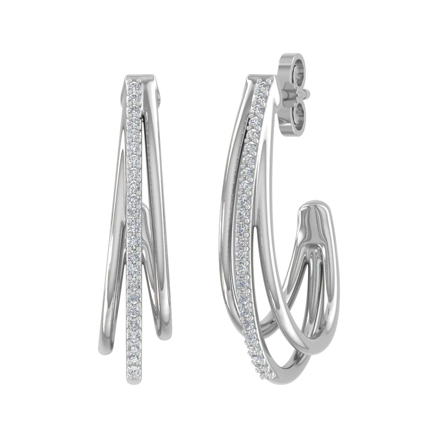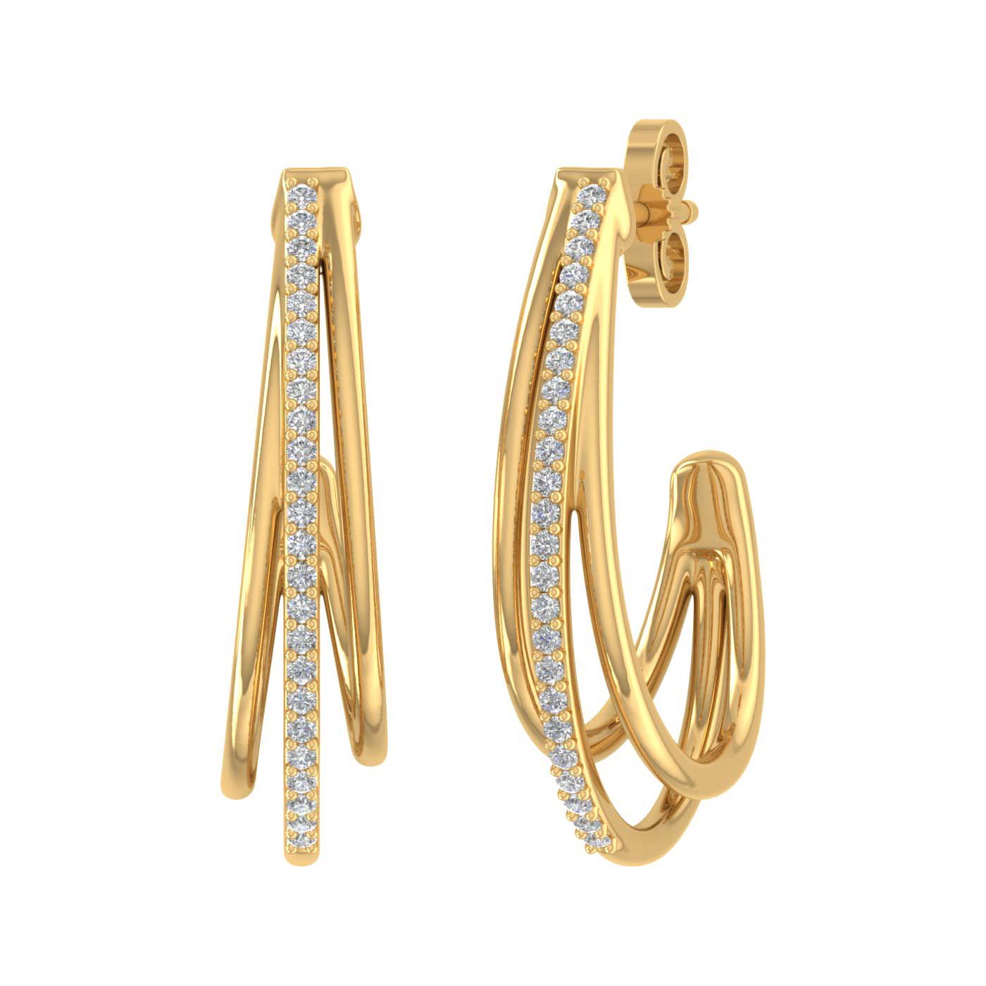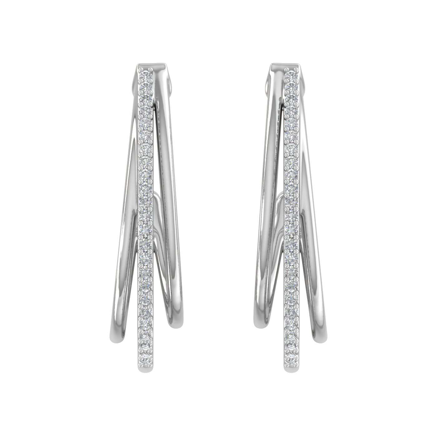 Charming and subtle, these 1/4 carat round diamond tri hoop earrings are an ideal piece of ornament that you can add to your collection. Forged in 14K gold, these earrings come with IGI Certified diamonds. If you are searching for a pair of earrings that makes you look different from others, these are precisely made for you.
