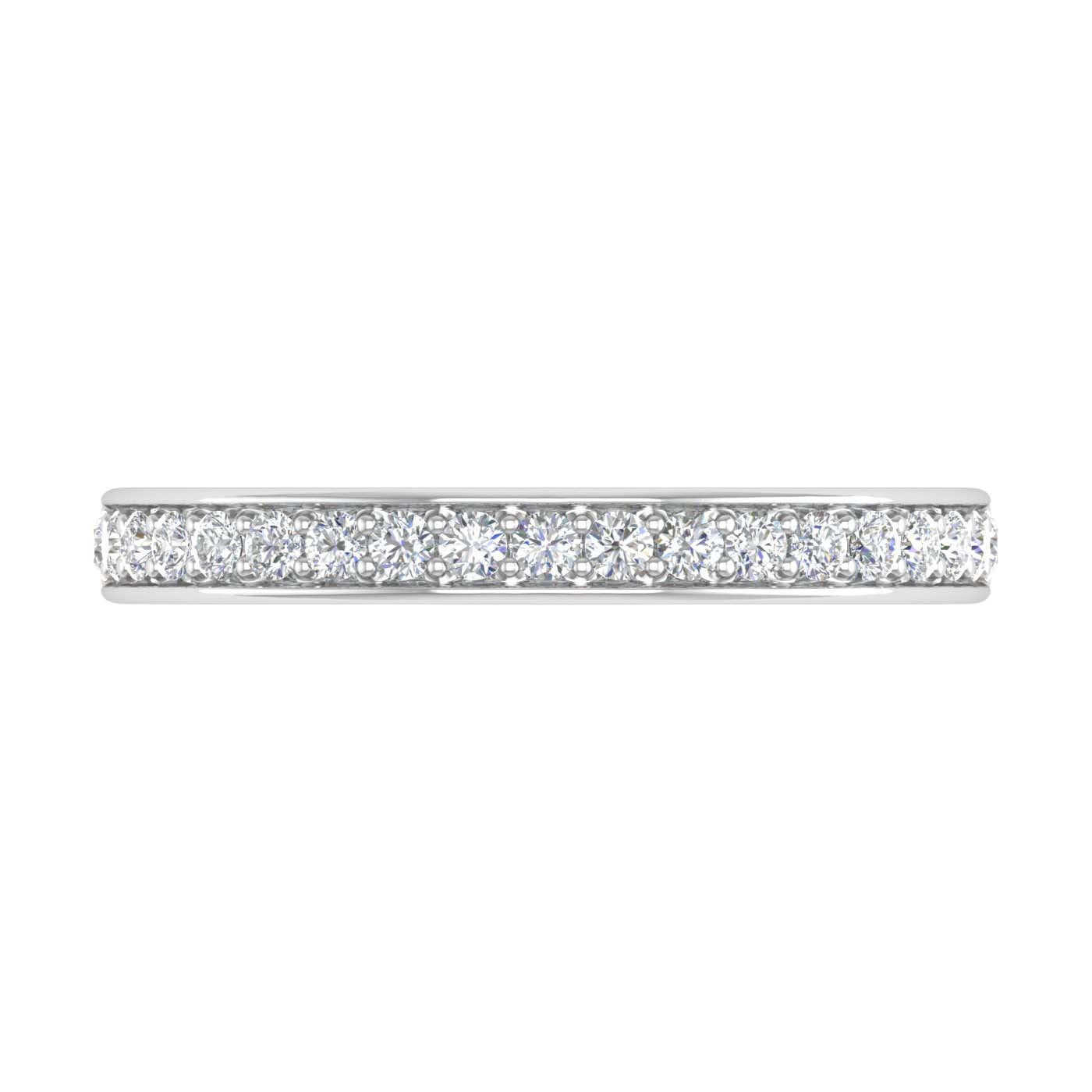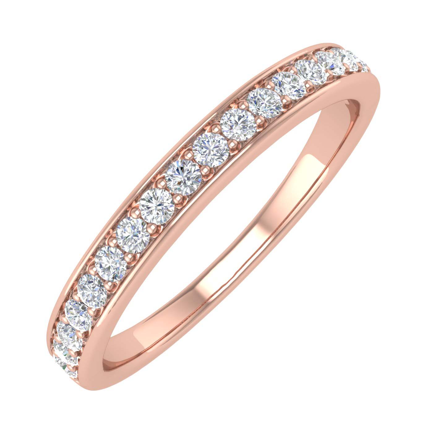 Beautifully rendered with 19 IGI Certified prong set round diamonds of 1/4 carat weight, this wedding ring is made in 14K gold. The simplicity of this design makes it a better option for daily use.