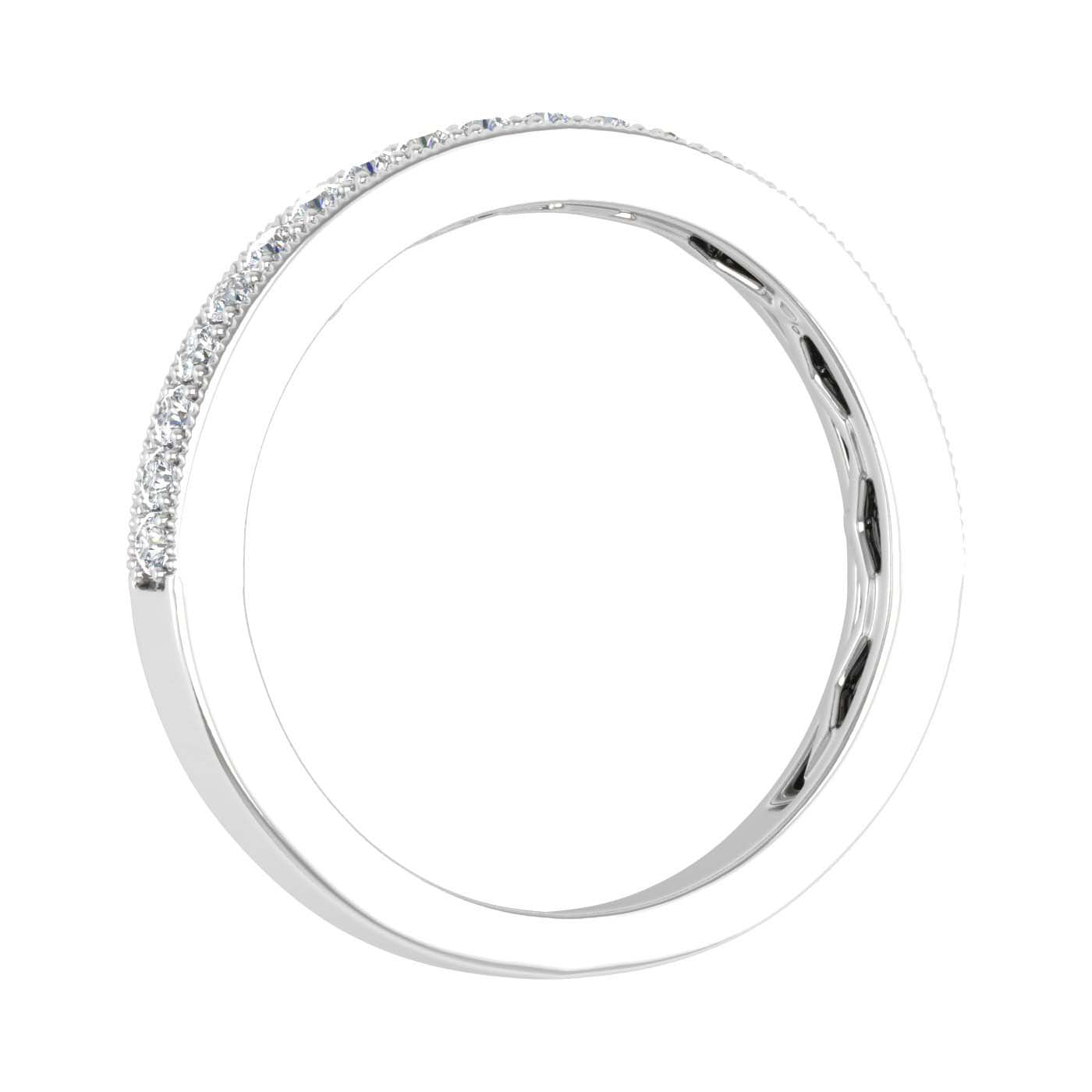 Mesmerizingly beautiful this wedding band ring is set in 14K gold and embedded with 21 prong set icy white diamonds which weigh 1/4 carat. The design of the ring makes it an undisputed hit in parties and special occasions.