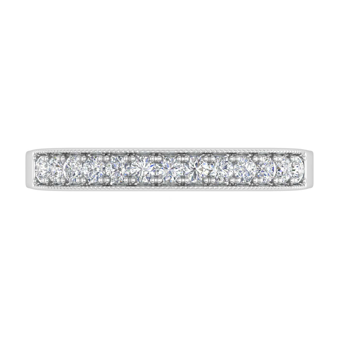 Get ready to be amazed by this beautiful 14K gold wedding band ring. It is crafted beautifully with 13 IGI Certified white diamonds of 1/4 carat weight and it is secured with prong setting. The design of the ring is simple yet durable making it ideal for using without any restrictions. This ring will surely win over your loved one's heart.