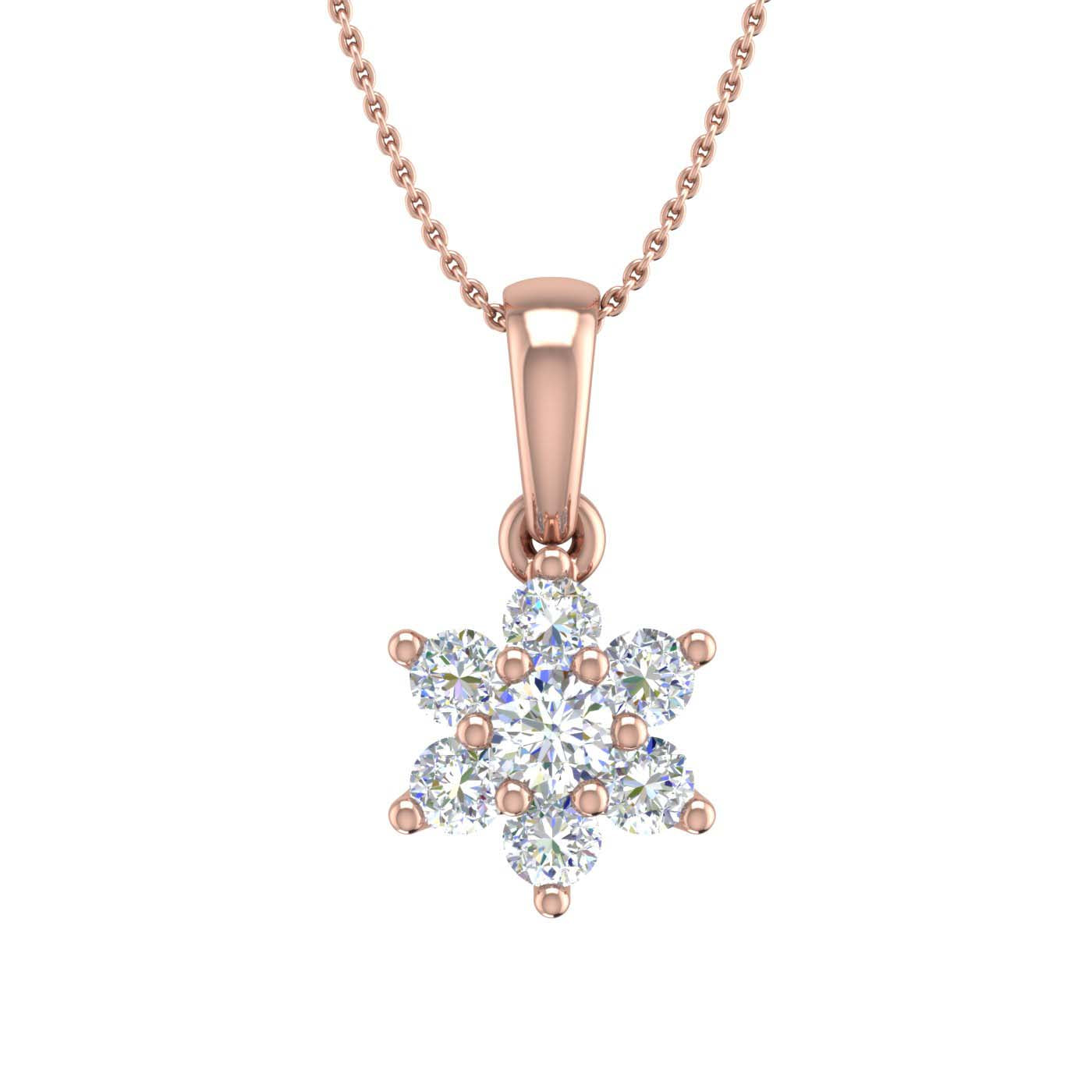 1/5 Carat 7-Stone Diamond Floral Cluster Pendant Necklace in Gold (Silver Chain Included) - IGI Certified