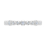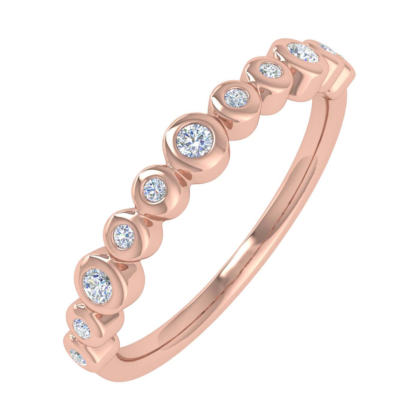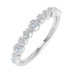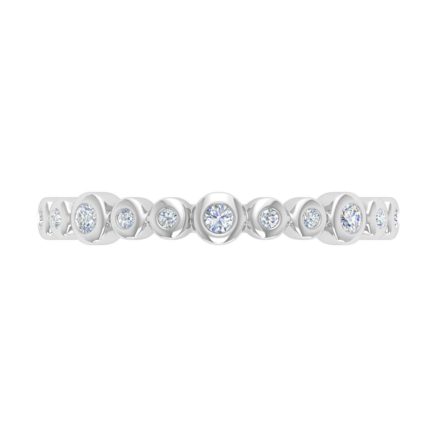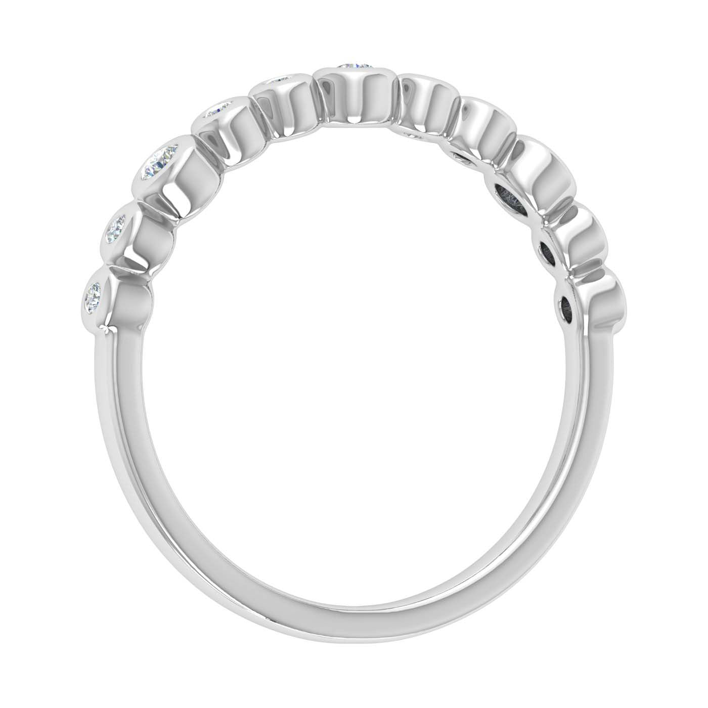 This feminine diamond wedding band ring is the most perfect jewelry for celebrating and sharing one of the most special dates in your life. It is crafted in 14K gold and studded with round diamonds of 1/5 carat weight in bezel setting. You can't go wrong with this classic design.
