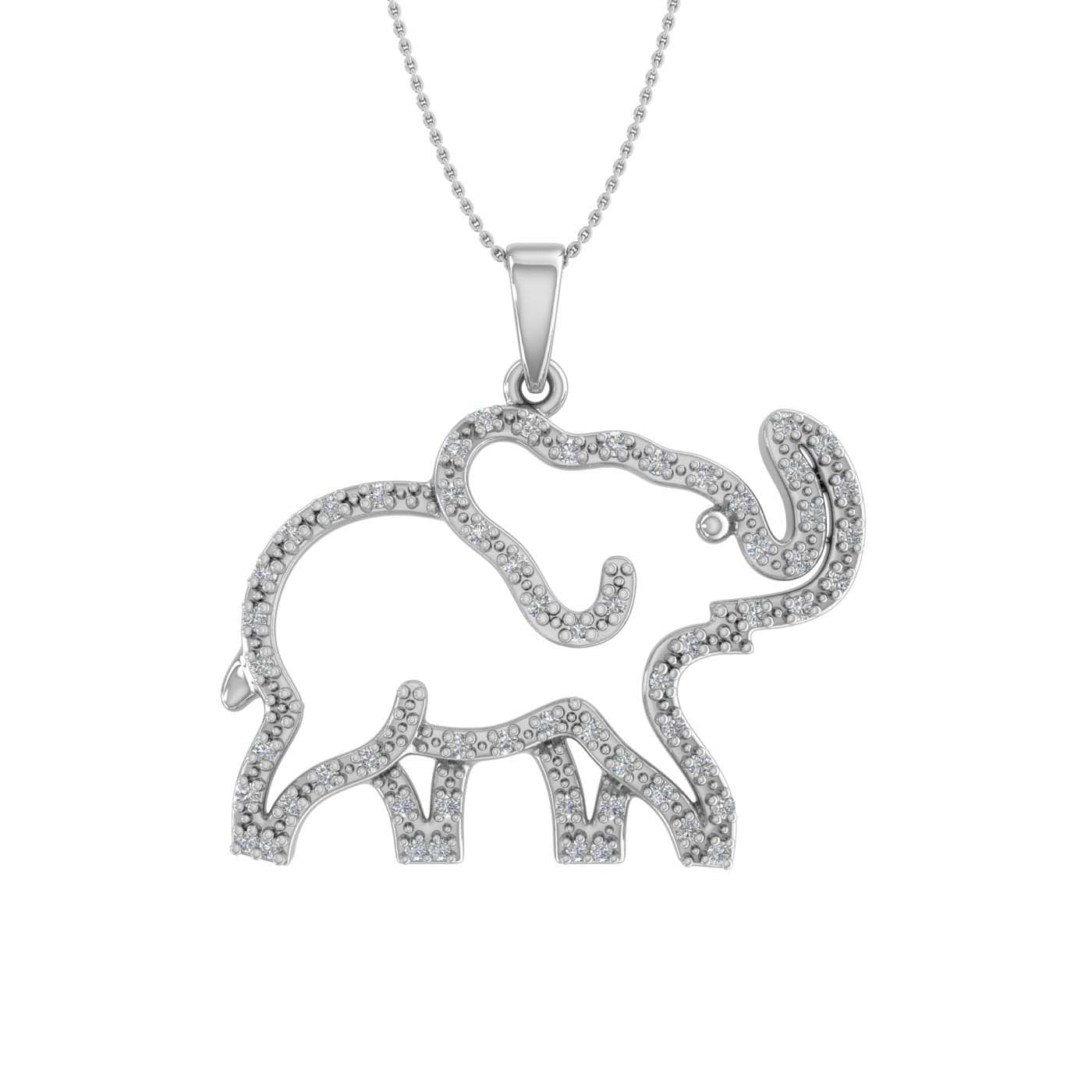 Depicting the grandeur of an elephant, this beautiful diamond baby elephant pendant is made in 14K gold and embedded with IGI Certified white diamonds of 1/5 carat weight. This pendant comes dangling with a beautiful silver chain. Stunning and beautiful this nature inspired pendants are a must have.