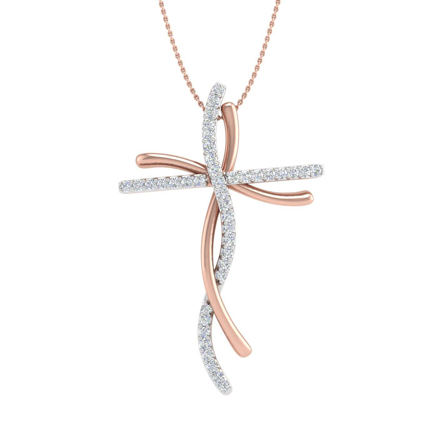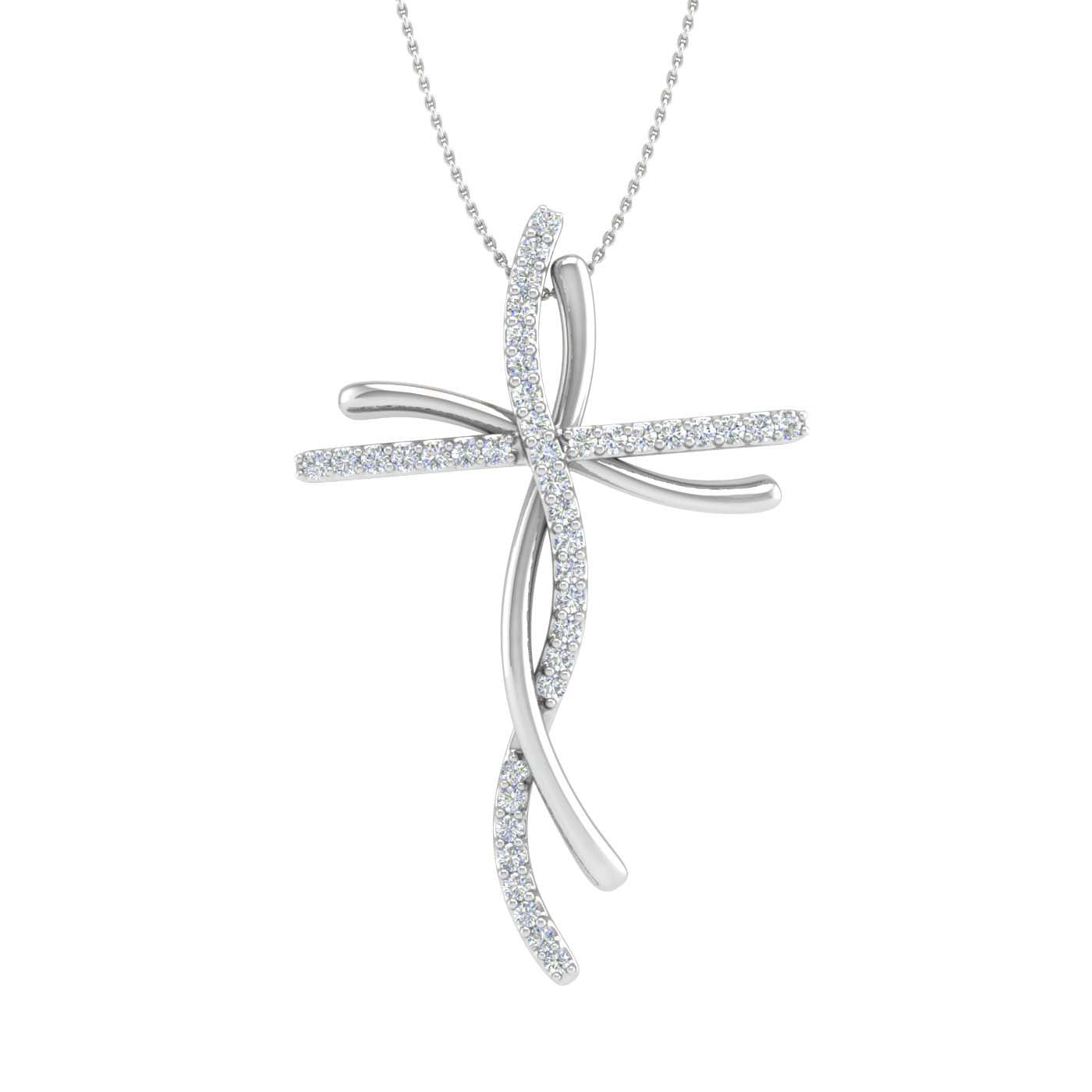 1/5 Carat Diamond Cross Pendant Necklace in Gold (Silver Chain Included) - IGI Certified