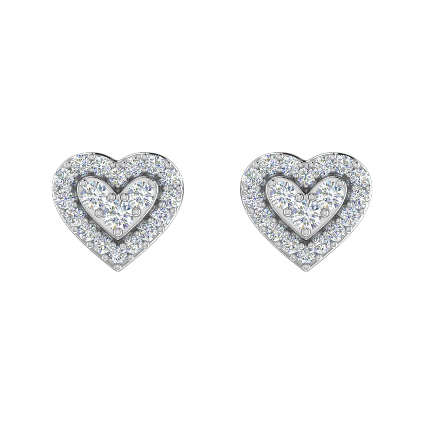 These amazing 1/5 carat round diamond heart-shaped earrings are made in 14K gold. This unique piece of jewelry shouldn't be left. Featuring natural white diamonds that are IGI Certified, this prong set beautiful earring are surely going to get freshness to your collection.