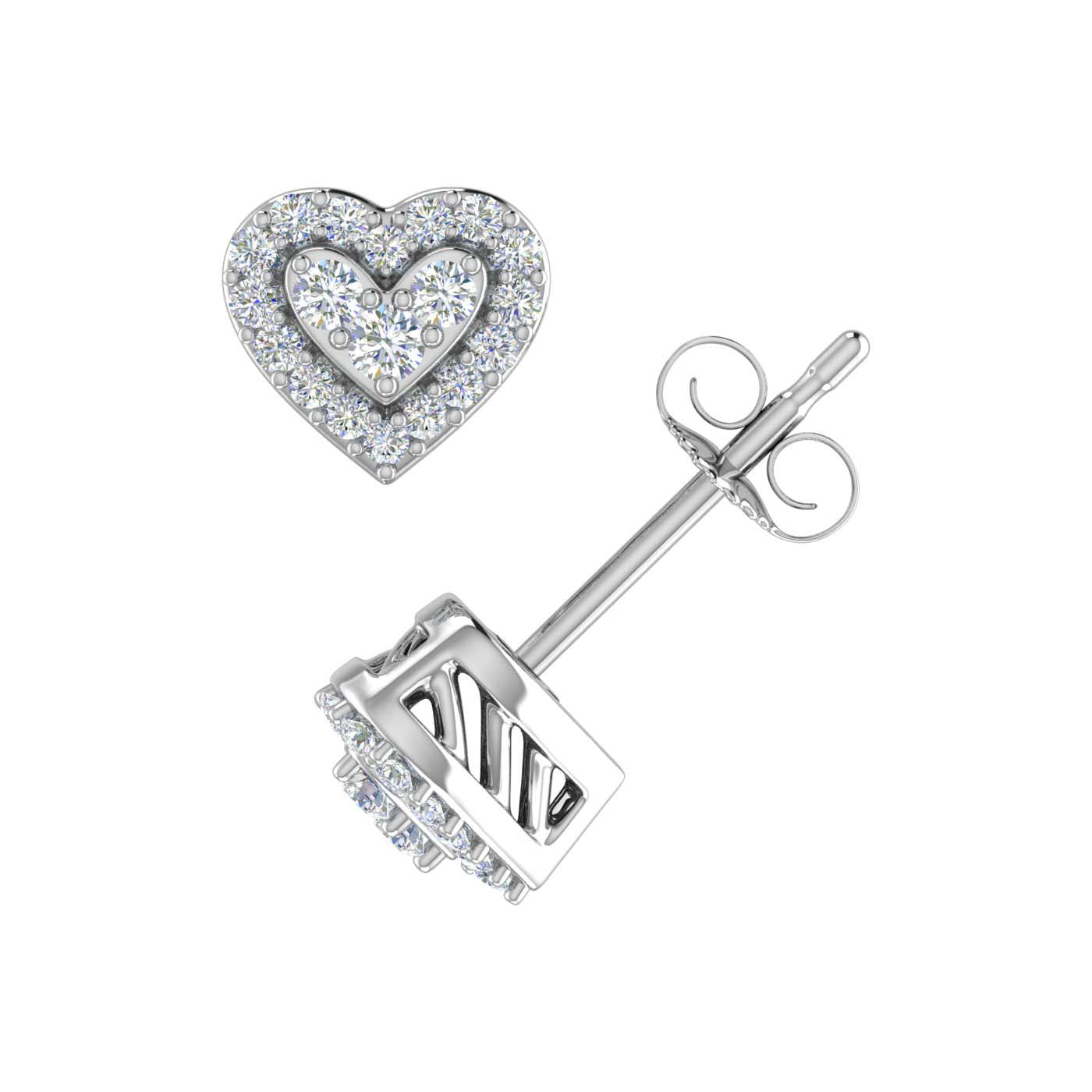 These amazing 1/5 carat round diamond heart-shaped earrings are made in 14K gold. This unique piece of jewelry shouldn't be left. Featuring natural white diamonds that are IGI Certified, this prong set beautiful earring are surely going to get freshness to your collection.