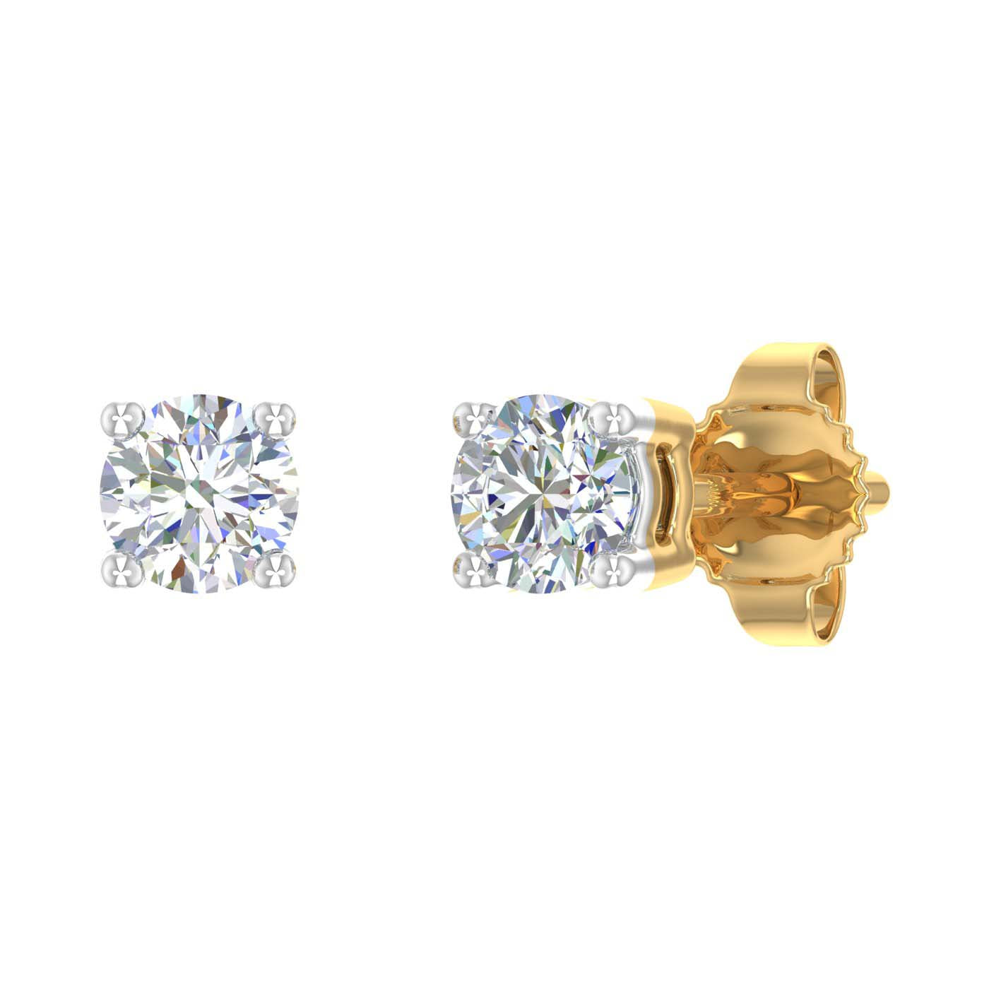 This classy 4-prong stud earrings are an amalgamation of style and sustainability. Made of 14k gold these earrings feature 1/5 carat white diamond with friction post and secured by pushback.