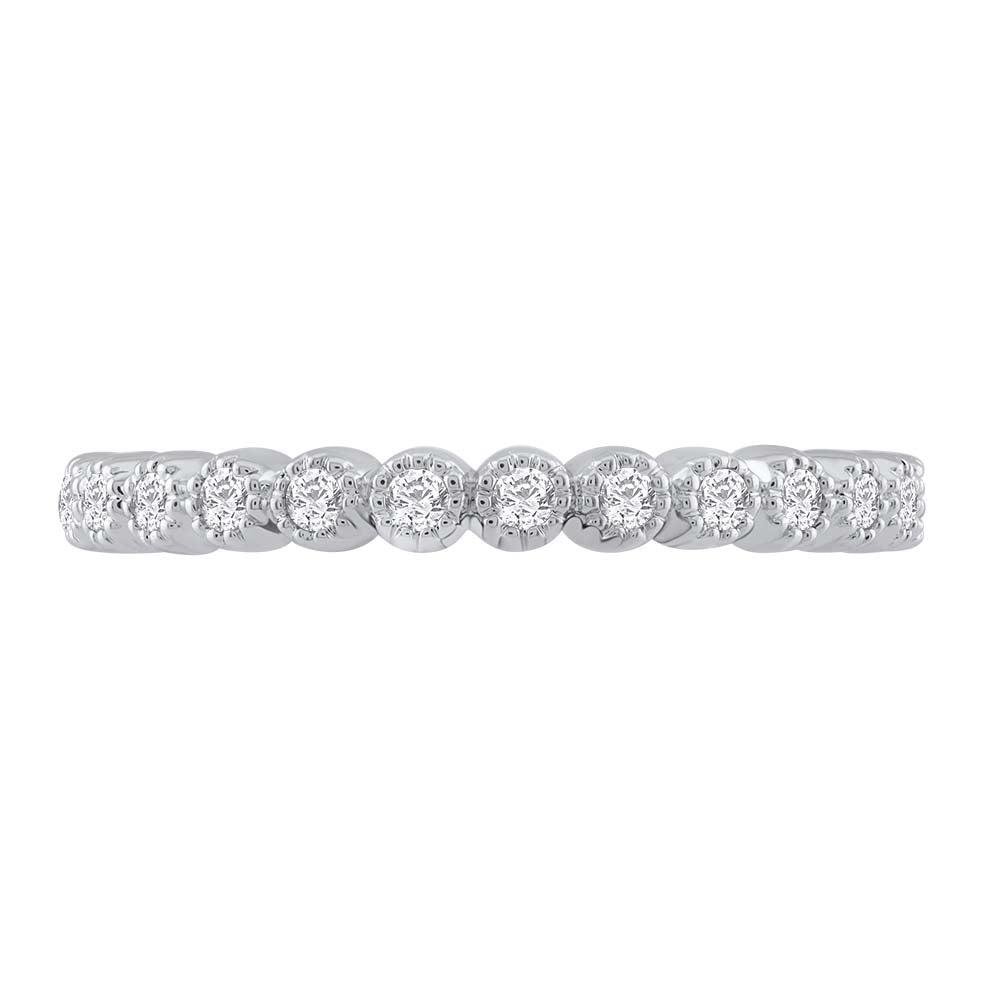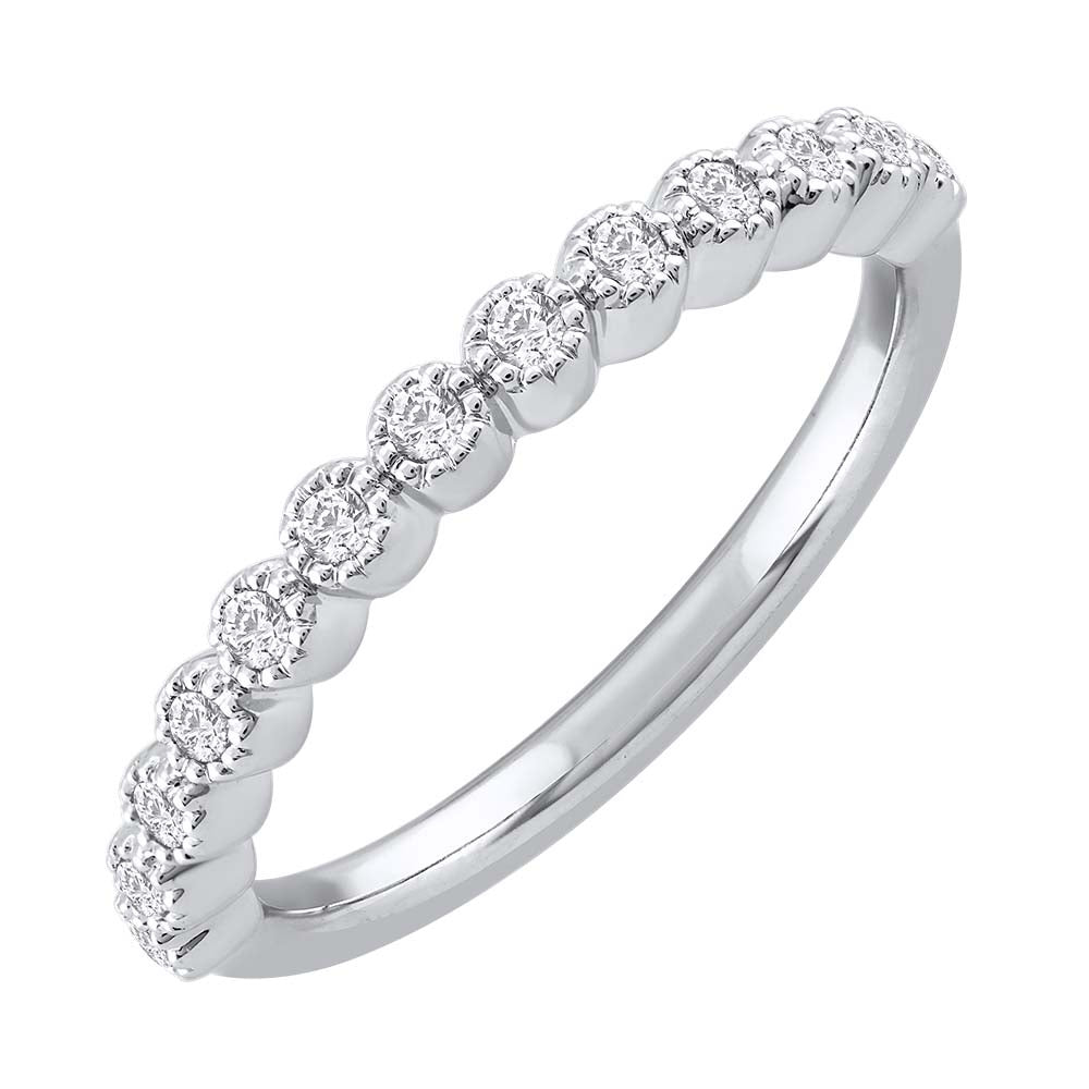 Get ready to be stunned with this majestic diamond wedding band ring. Formed in 14K gold this ring is enhanced with Bezel set white diamonds of 1/5 Carat weight and it emits a shine of its own which increase the grandeur of the wearer's outfit.