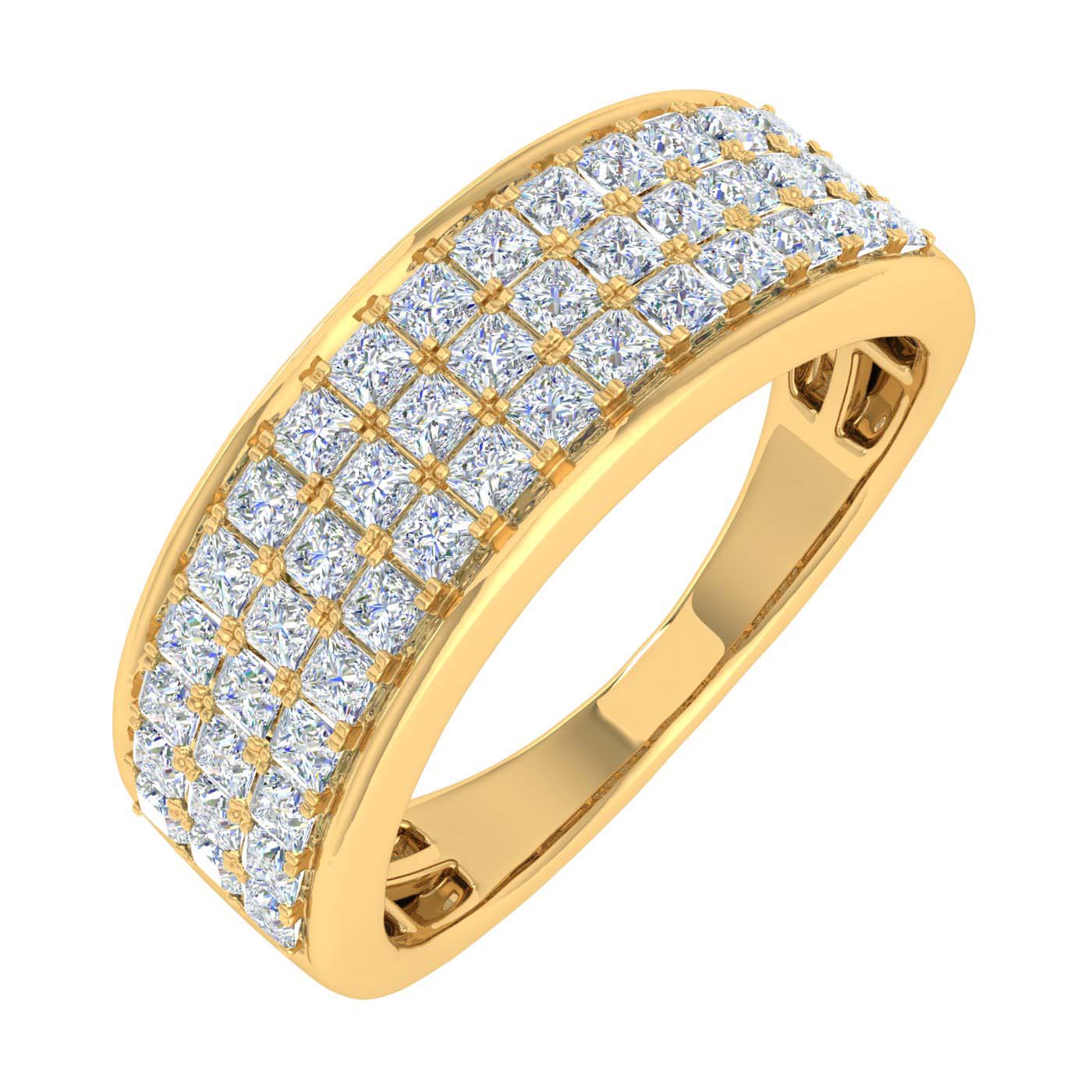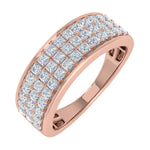 1 Carat 3-Rows Unisex Diamond Wedding Band Ring in Gold