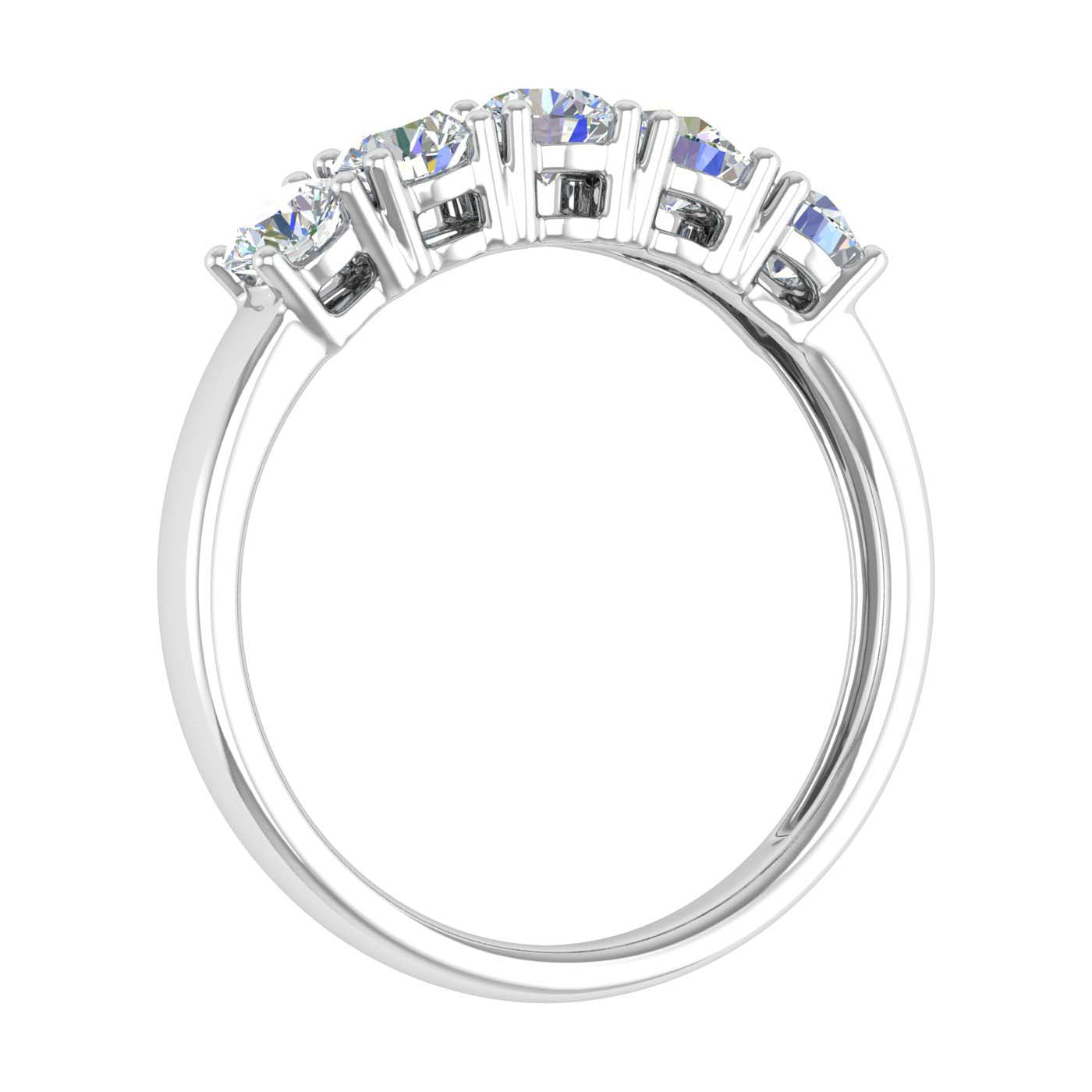 Get ready to be stunned with this majestic diamond wedding band ring. Formed in 14K gold this ring is enhanced with 5 white diamonds of 1 carat weight and it emits a shine of its own which increase the grandeur of the wearer's outfit.