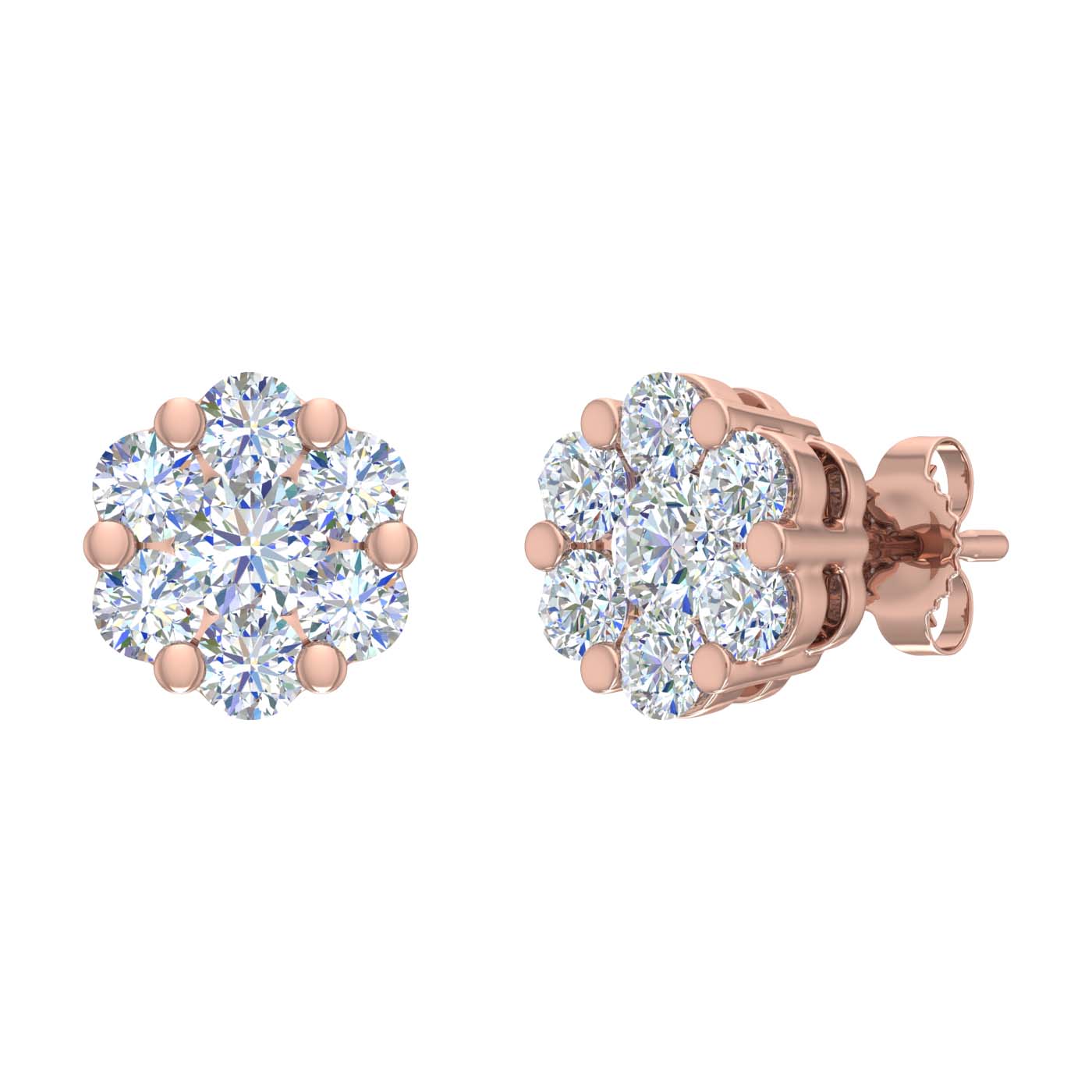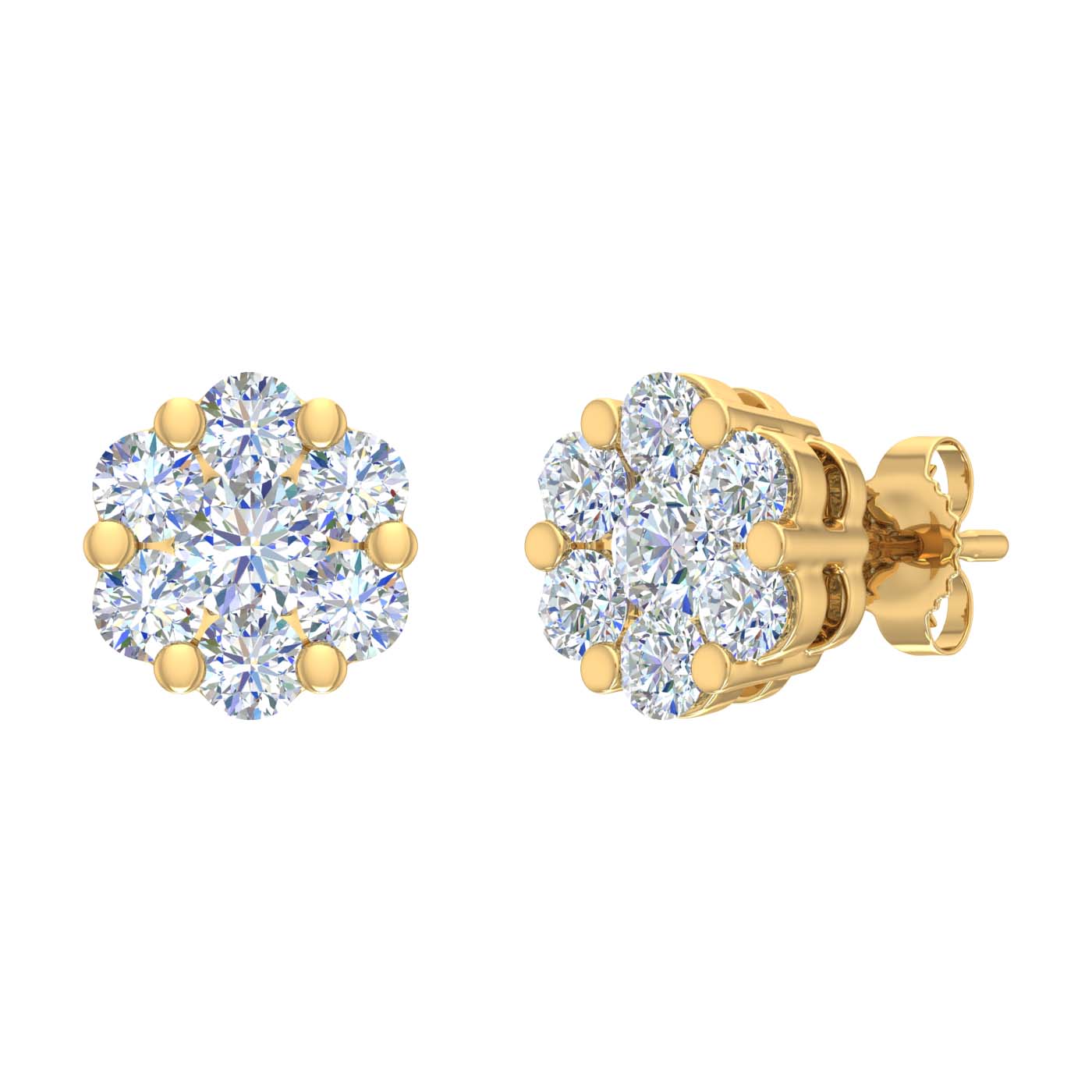 1 Carat (ctw) Cluster Diamond Stud Earrings in Gold - IGI Certified