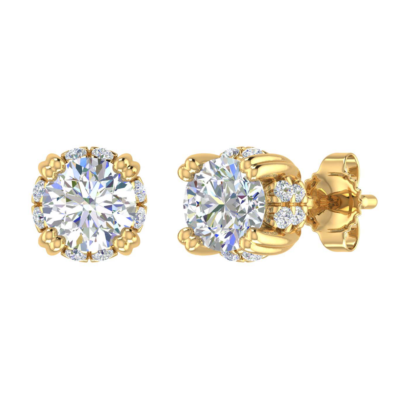 Get mesmerized with the beauty of these diamond stud earrings. Forged in 14K gold these studs feature 2 white diamonds of 1 Carat weight. Made to stand out from the rest, these studs will keep attention acquired in it.