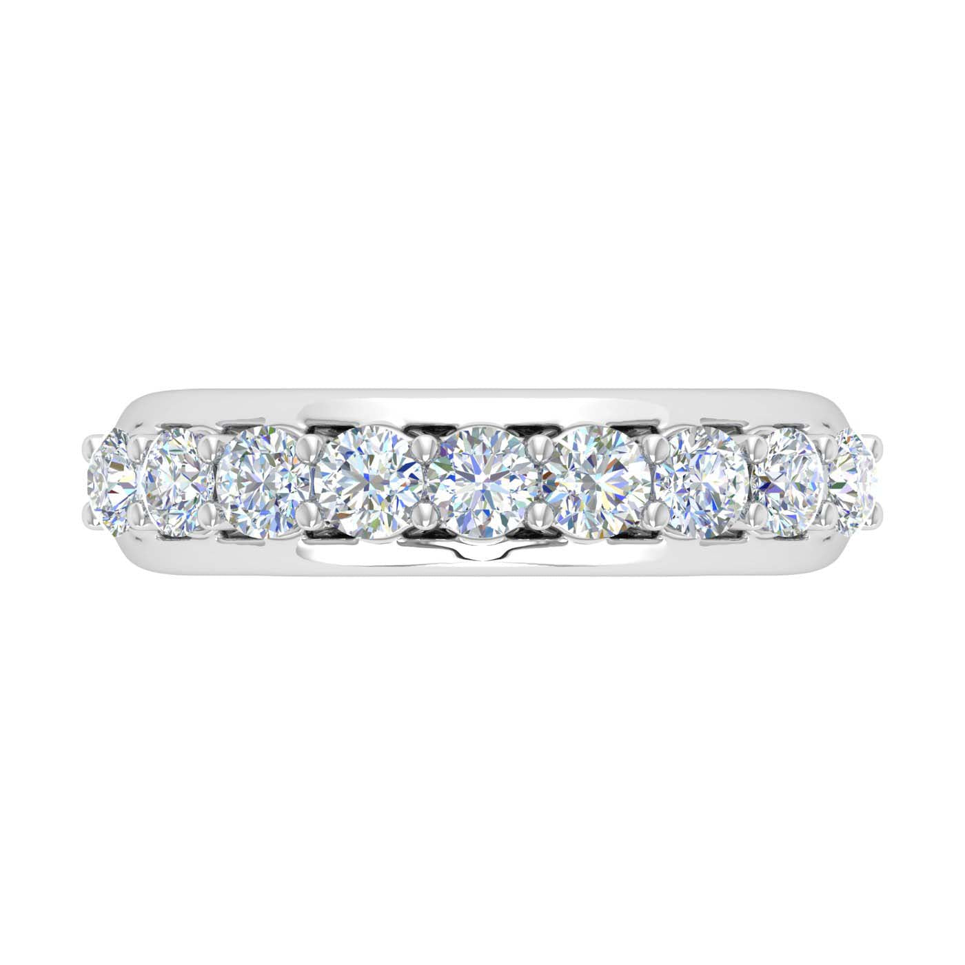 Get ready to be stunned with this majestic diamond wedding band ring. Formed in 14K gold this ring is enhanced with prong set white diamonds of 1 carat weight and it emits a shine of its own which increase the grandeur of the wearer's outfit.