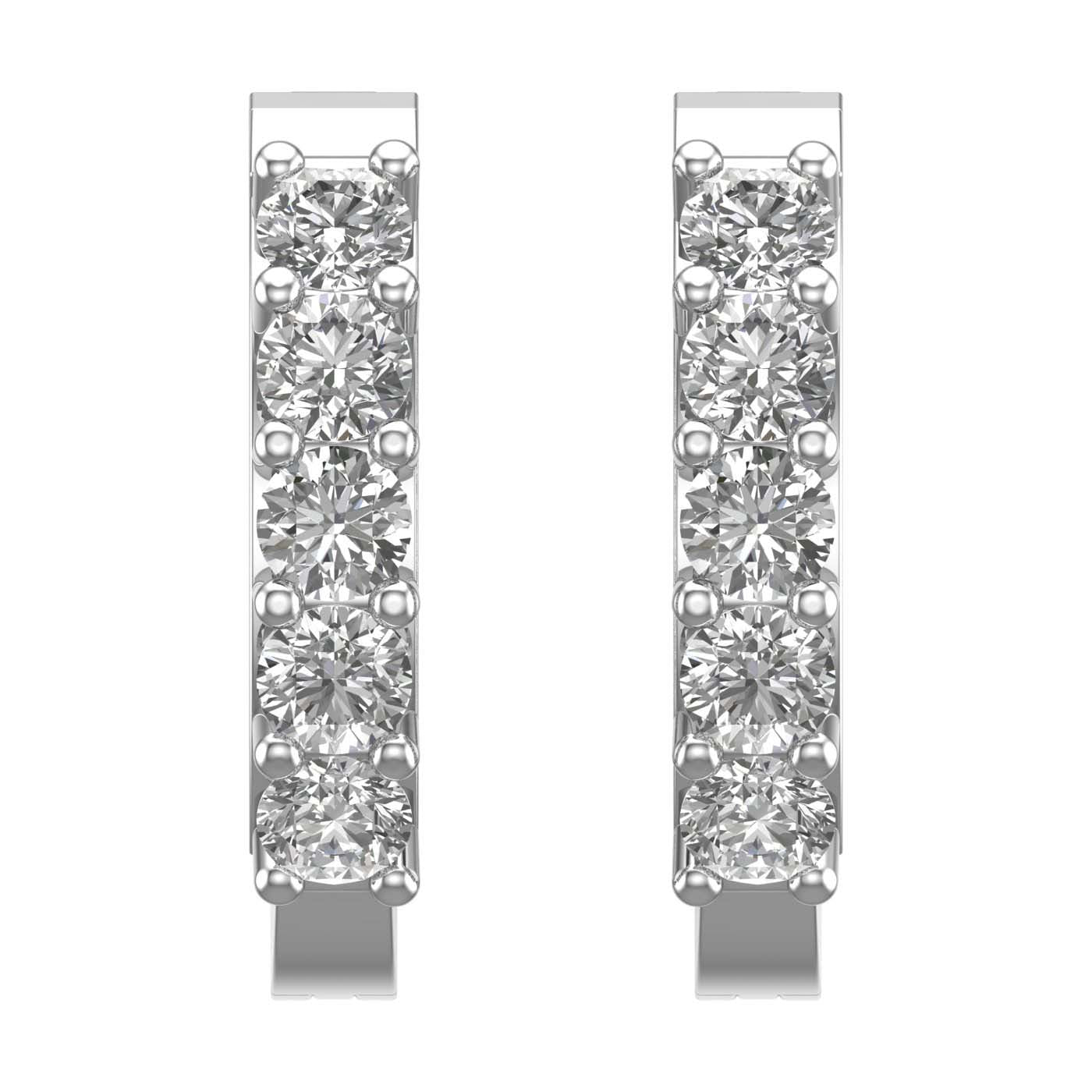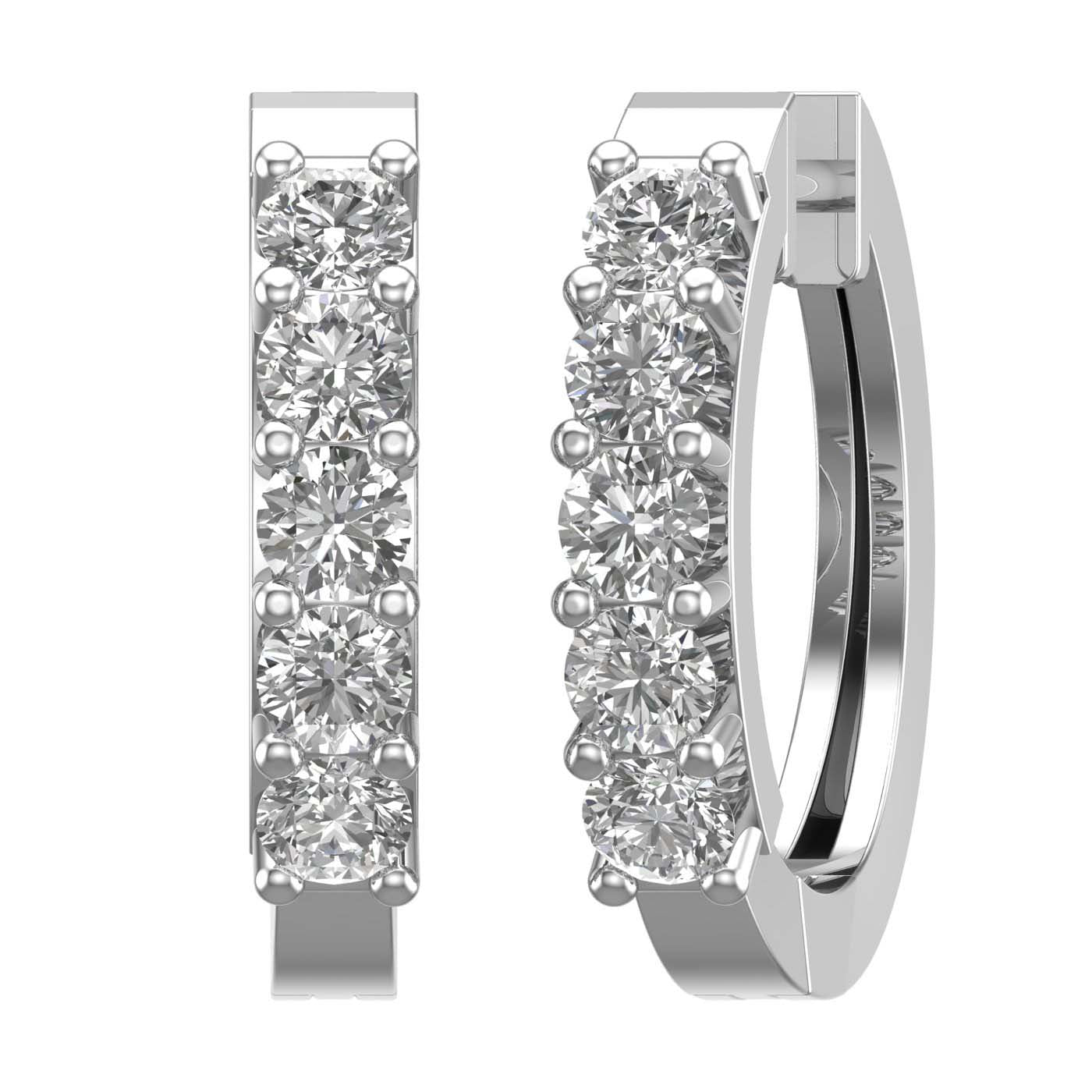 A symbol of Elegance, this hoop earrings feature with 1 carat white diamonds of SI1-SI2 clarity. This pair of earring is set in 14K gold and secured with hinge with notched post. This extremely comfortable piece of jewelry can be wore for occasion in day or night.