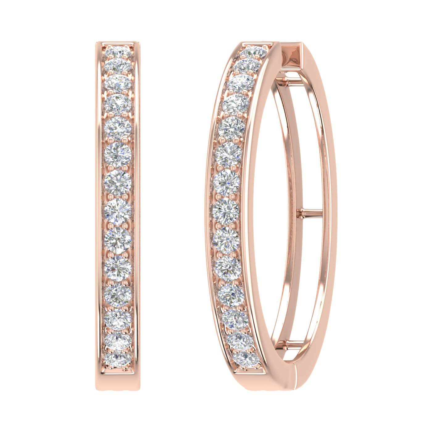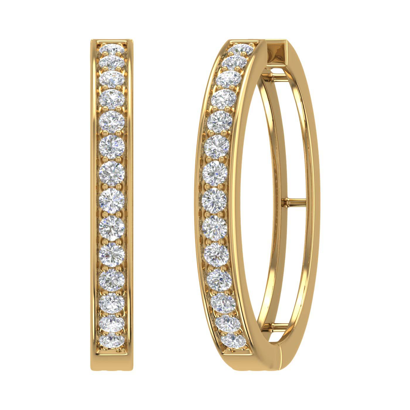 1 Carat Prong Set Diamond Ladies Hoop Earrings in Gold