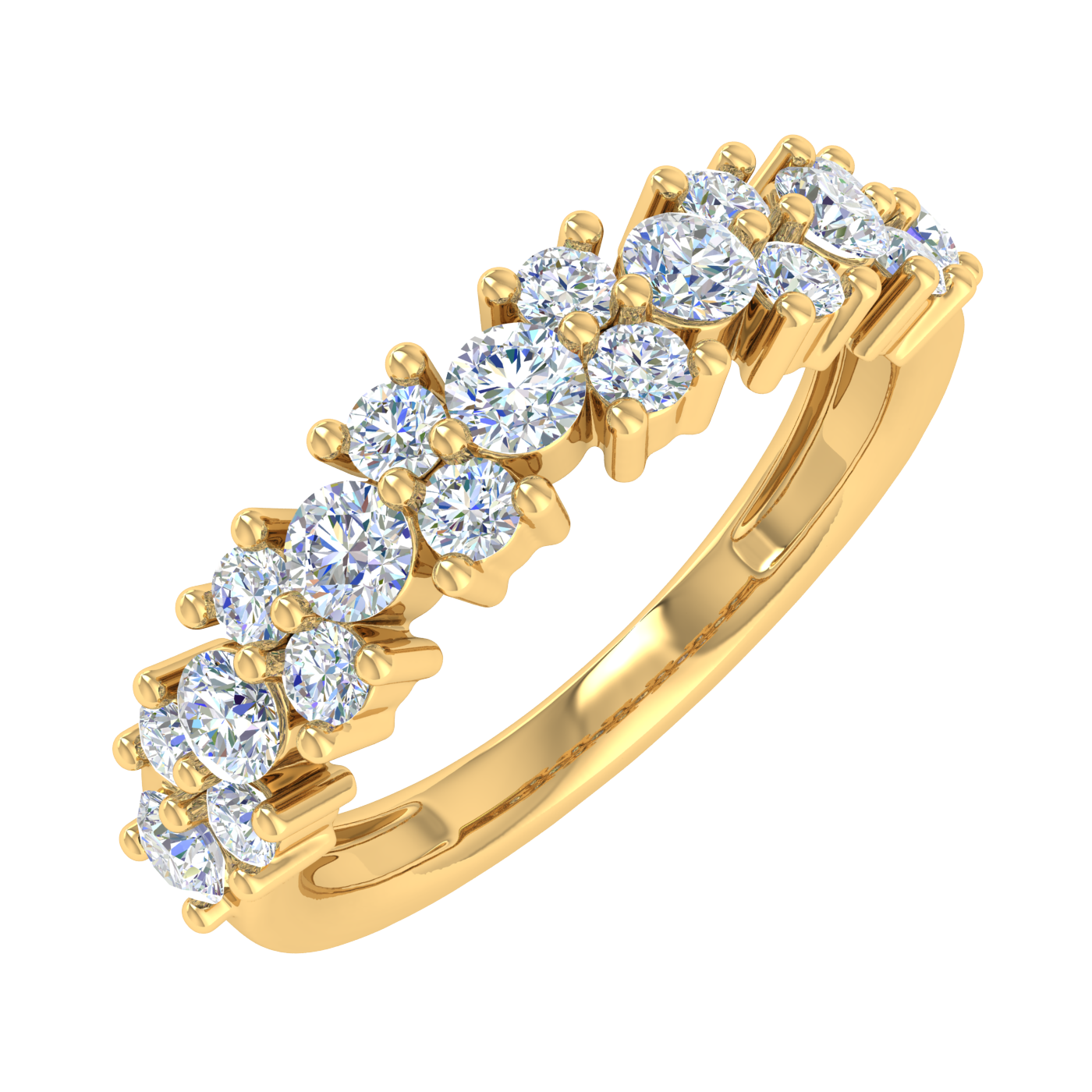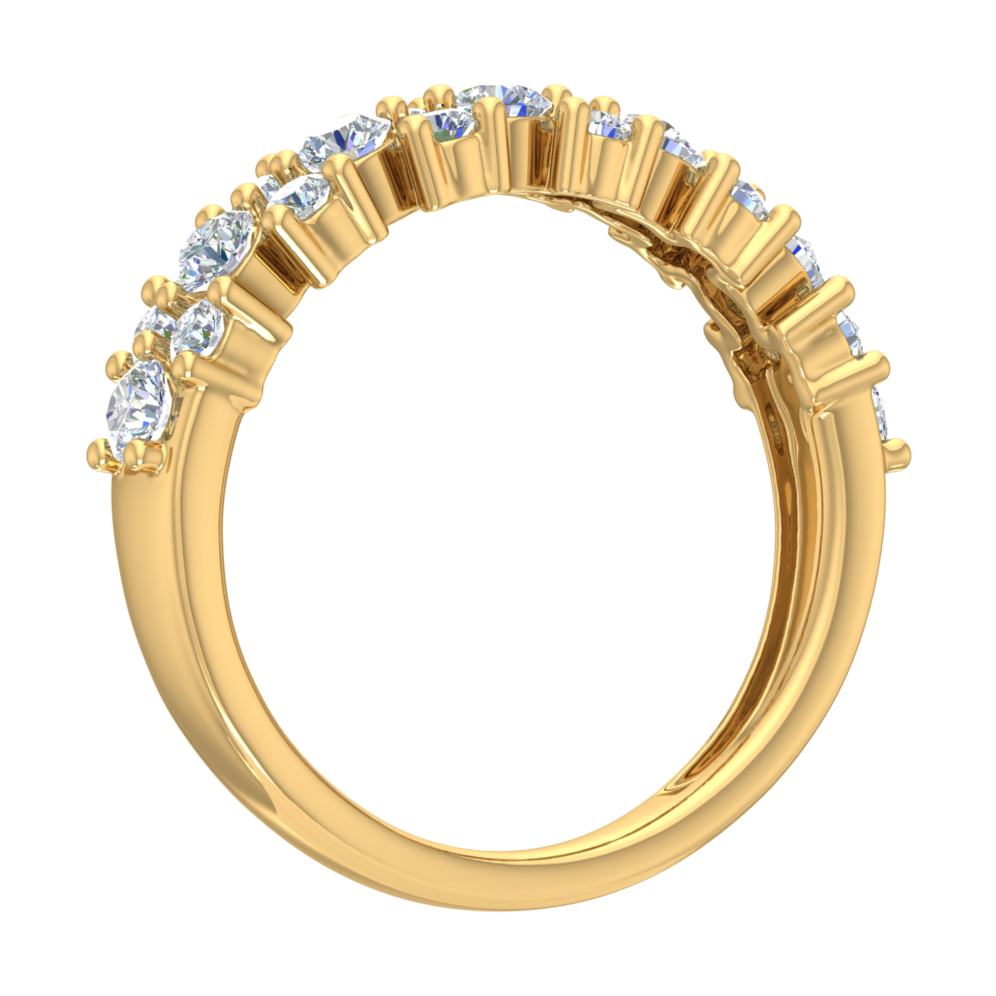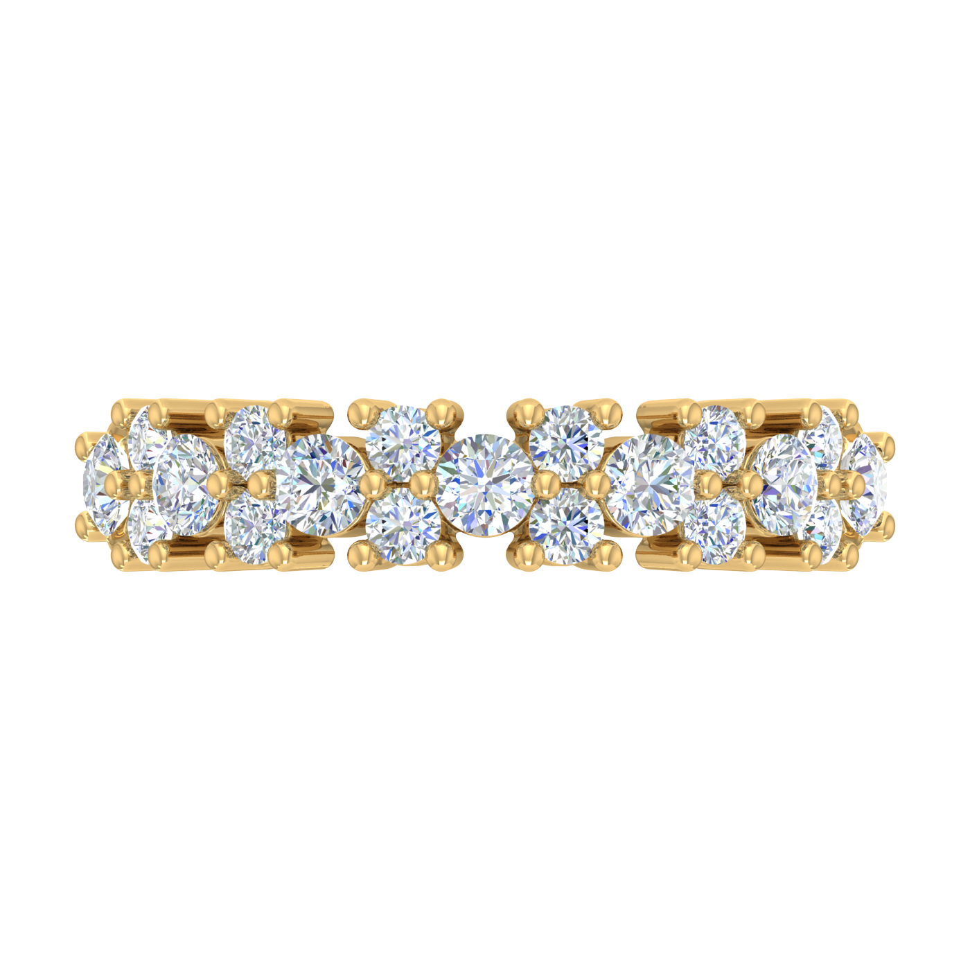 Get ready to be stunned with this majestic diamond wedding band ring. Formed in 14K Yellow Gold this ring is enhanced with Prong set white diamonds of 1 Carat weight and it emits a shine of its own which increase the grandeur of the wearer's outfit.