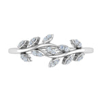A beautiful leaf-shaped diamond wedding ring is nature-inspired. Vines of the precious metal with diamonds on the leaf makes this anniversary band irresistible.