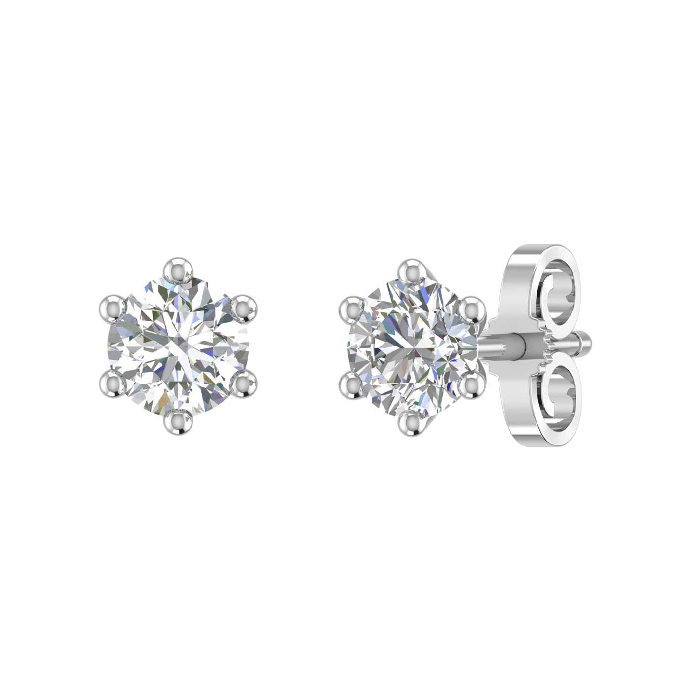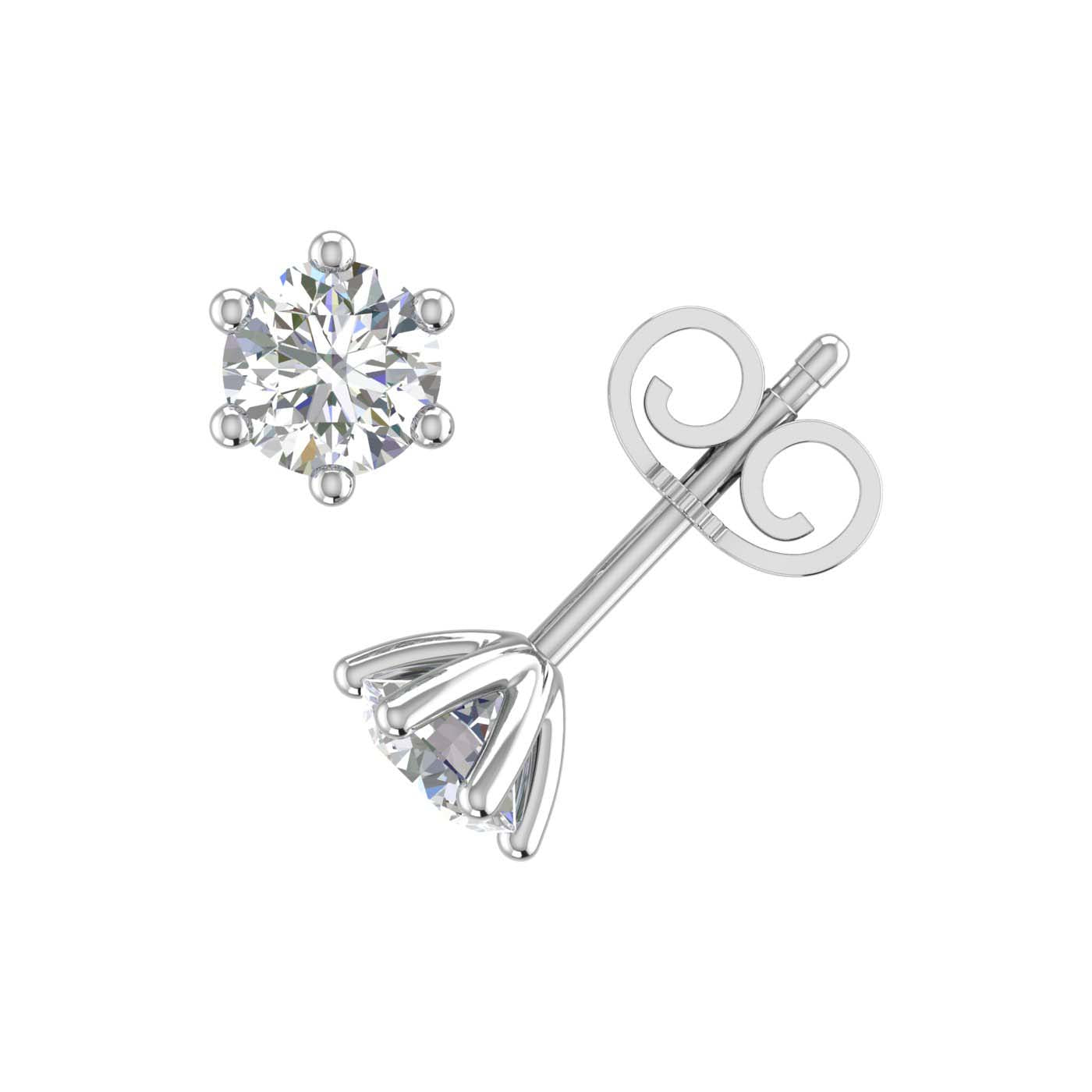 2/3 Carat Diamond 6-Prong Set Stud Earrings in Gold (0.66 Ct)