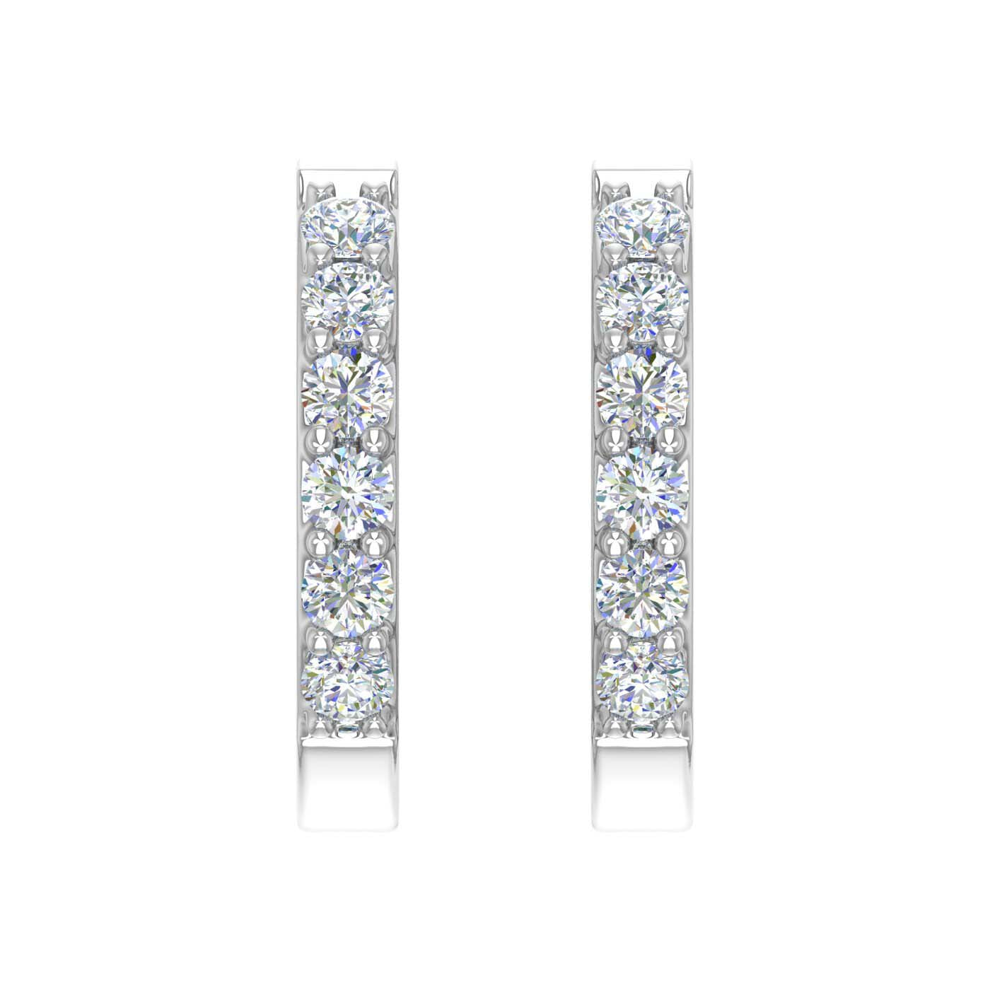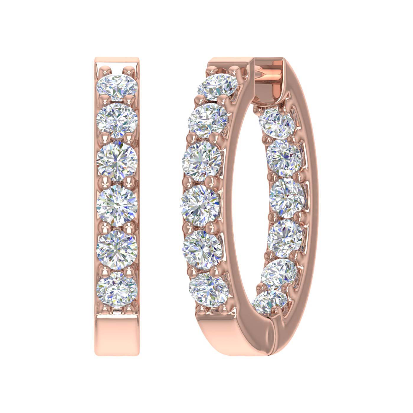 A symbol of elegance, this Inside Out prong-set hoop earrings feature with white diamonds of 2 carat weight that are IGI Certified. This pair of earrings is made in 14K gold, And it is an extremely comfortable piece of jewelry to be used for parties as well as other occasions.