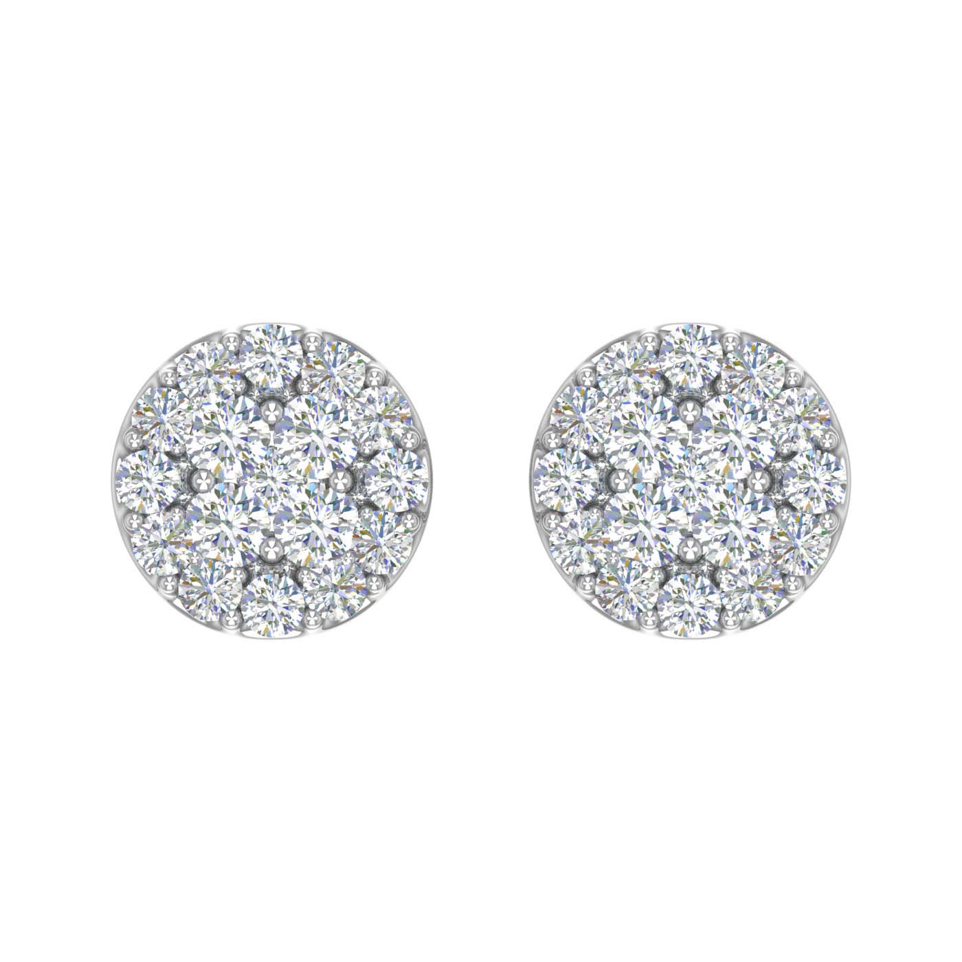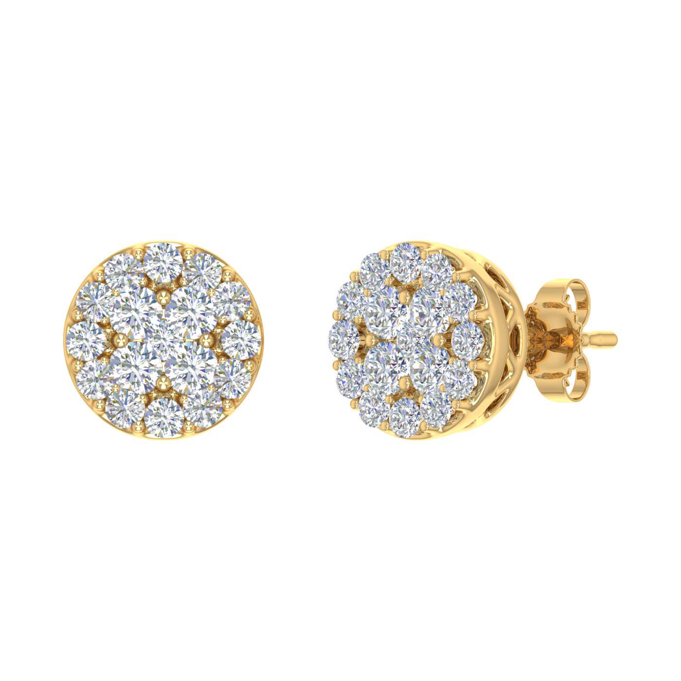 3/4 Carat Cluster Diamond Stud Earrings in Gold - IGI Certified