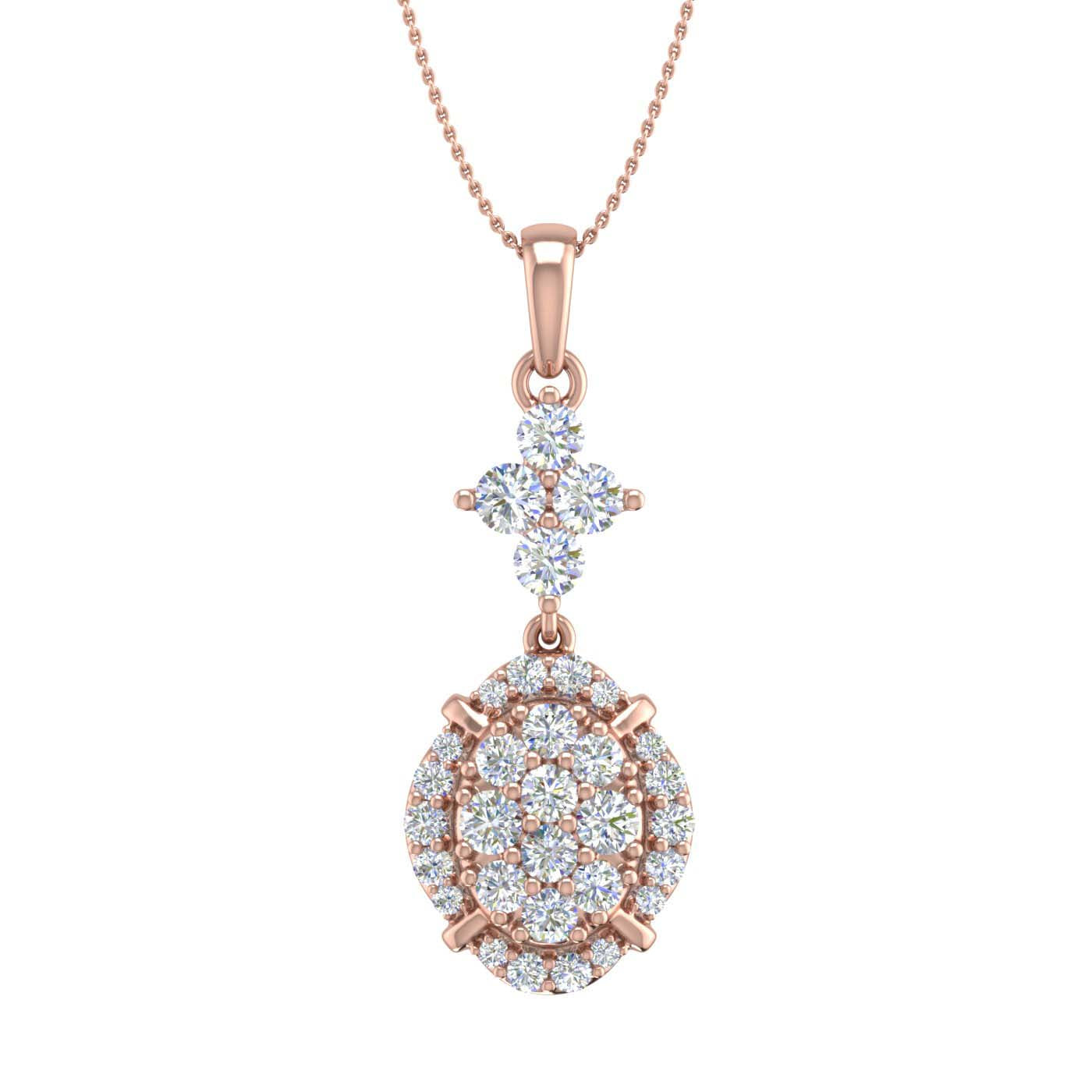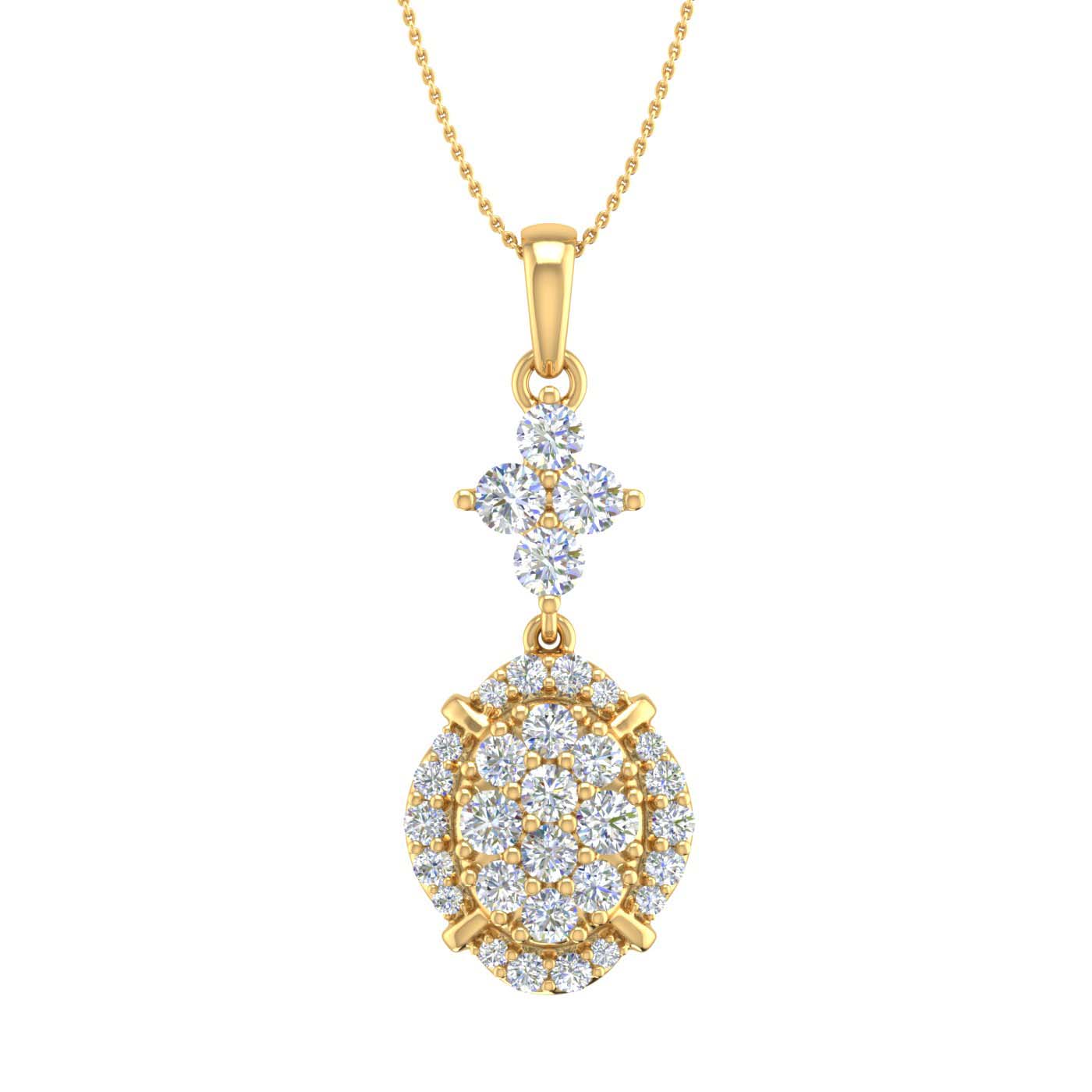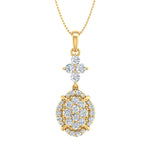 Bestowed with prong set white diamonds of 3/4 carat weight, this cluster pendant necklace is made in 14K gold. Cluster pendants are the best gift you can give to someone as they are always in trend. It comes with silver chain.