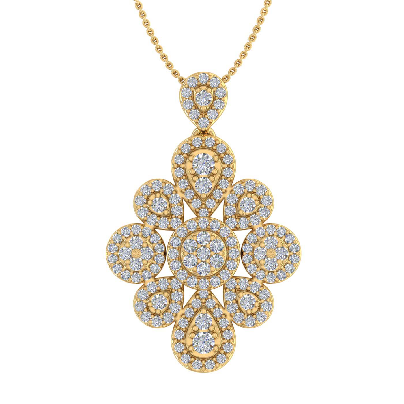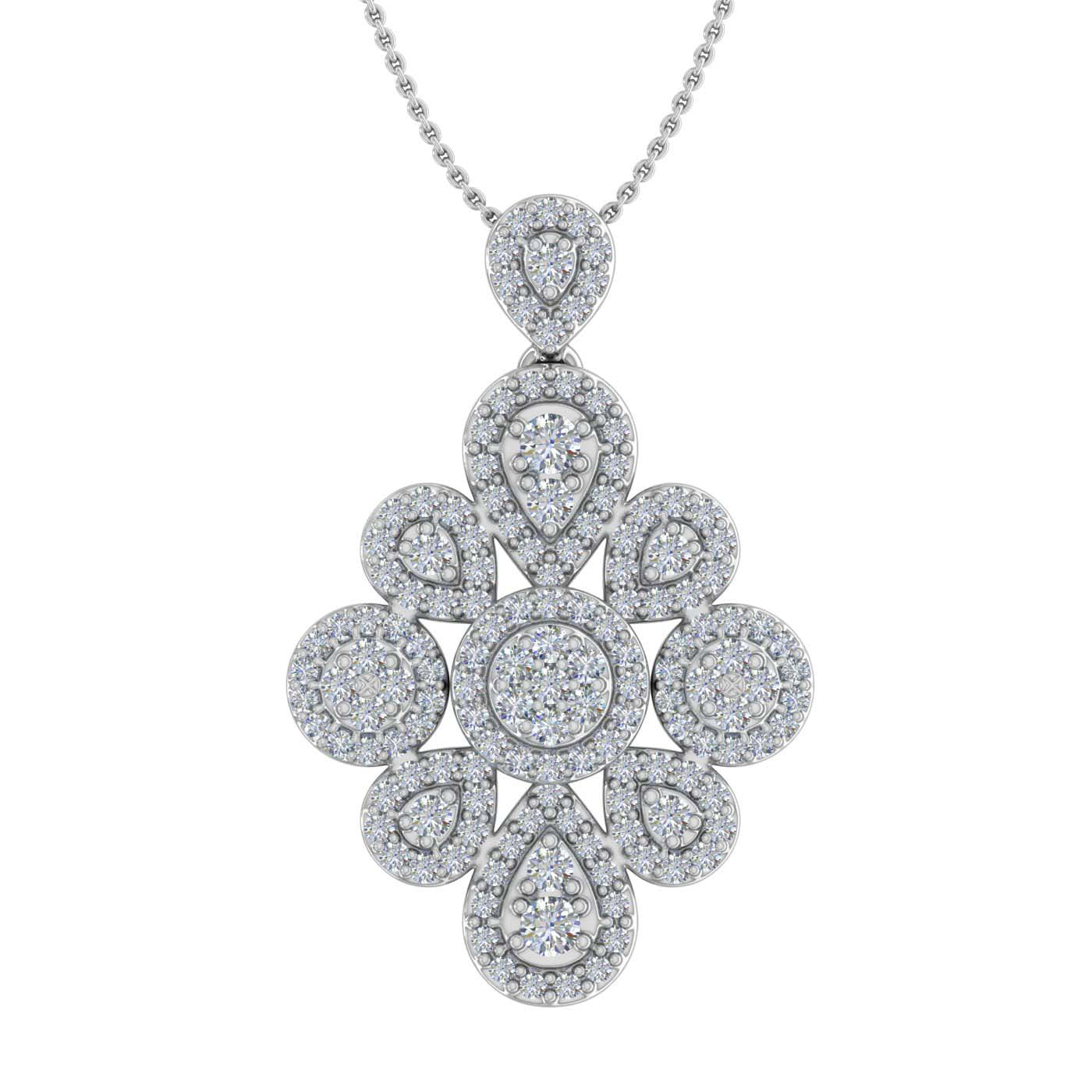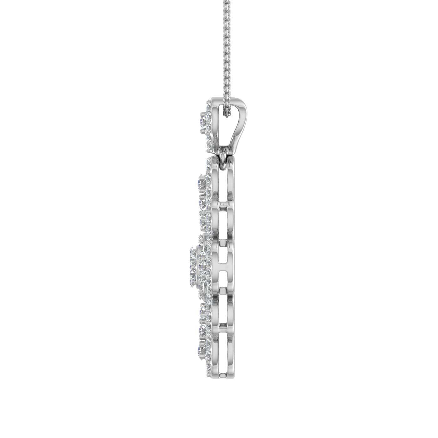 Be it a formal gathering or an informal one you can always pair this dewdrop diamond pendant for any of the both. This beautiful pendant is rendered in 14K gold with white diamonds of 3/4 carat weight. This pendant comes dangling with a beautiful silver chain. Simple yet elegant these pendants never go out of trend.