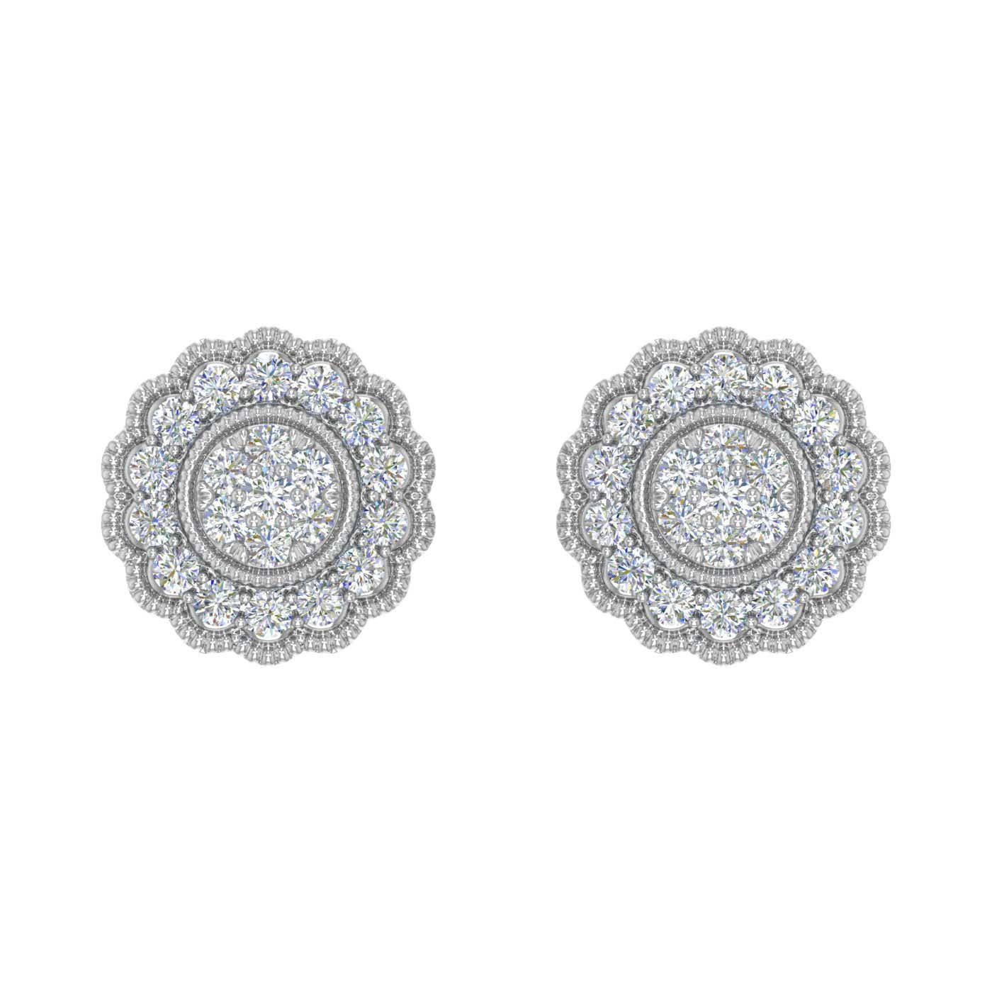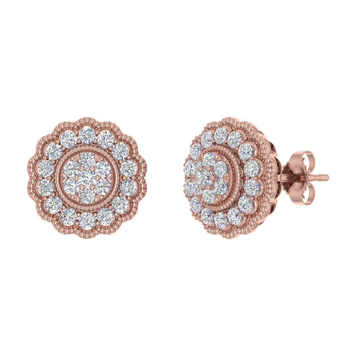 3/4 Carat Diamond Flower Shaped Stud Earrings in Gold