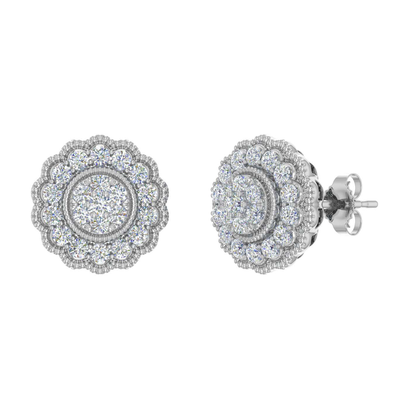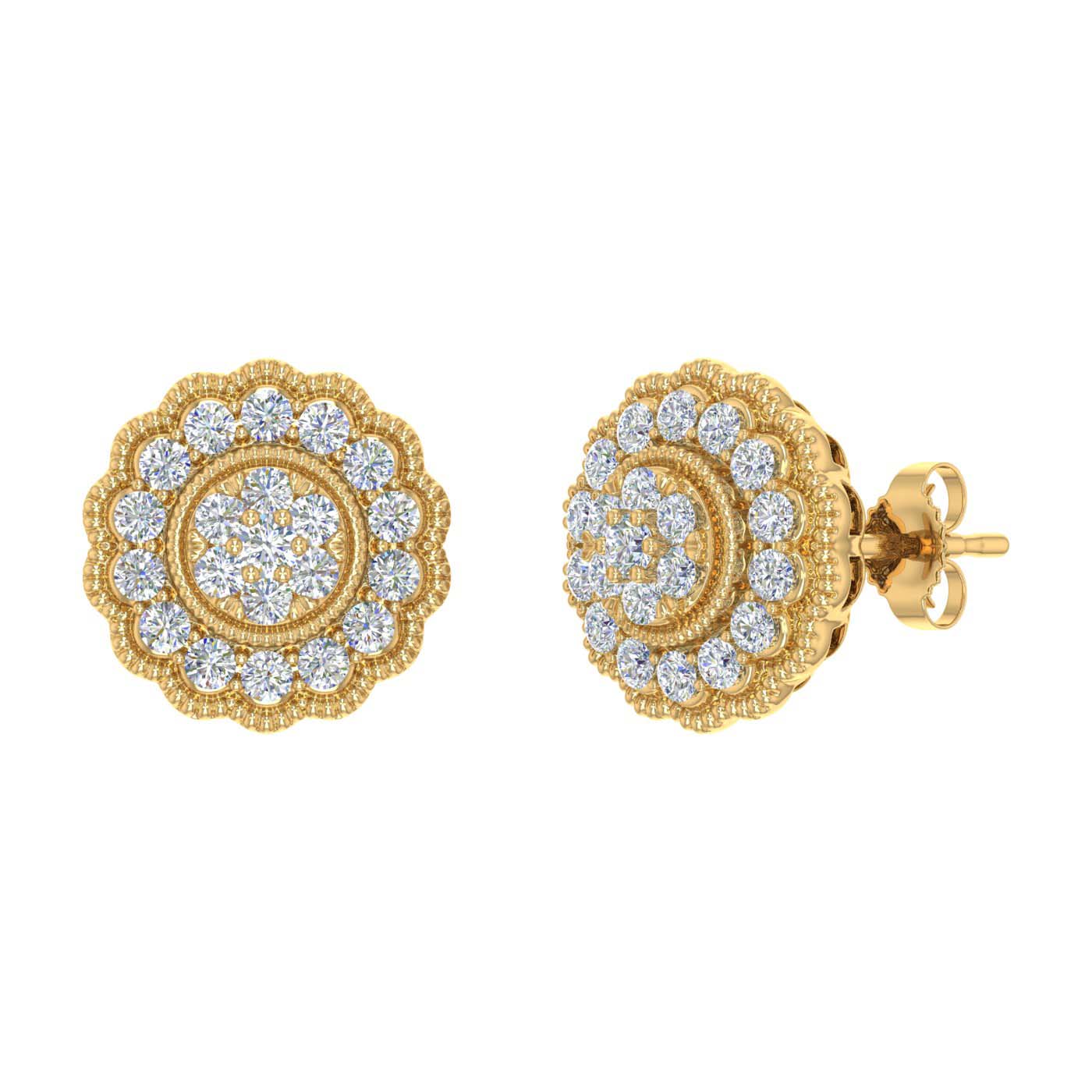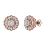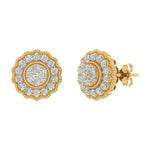 3/4 Carat Diamond Flower Shaped Stud Earrings in Gold - IGI Certified