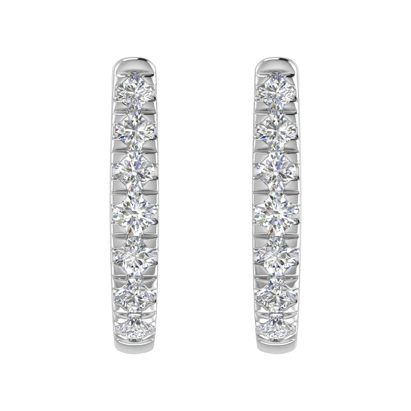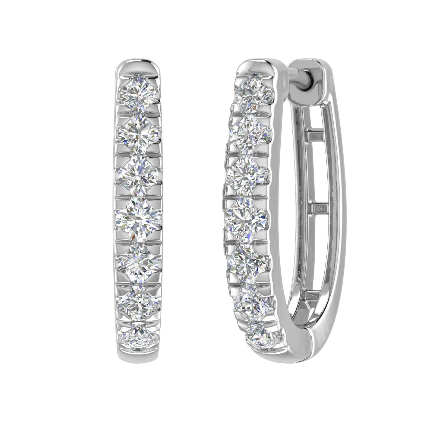 These 3/4 carat prong set diamond hoop earrings are an ideal option for everyday wear jewelry. Made from 14K solid gold and embedded with natural white diamonds these hoop earrings are light on ear and durable piece of jewelry.