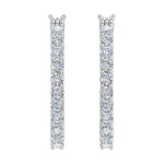 A symbol of Elegance, this hoop earrings feature with 3/4 carat white diamonds. This pair of earring is set in 14K gold and secured with hinge with notched post. This extremely comfortable piece of jewelry can be wore for occasion in day or night.