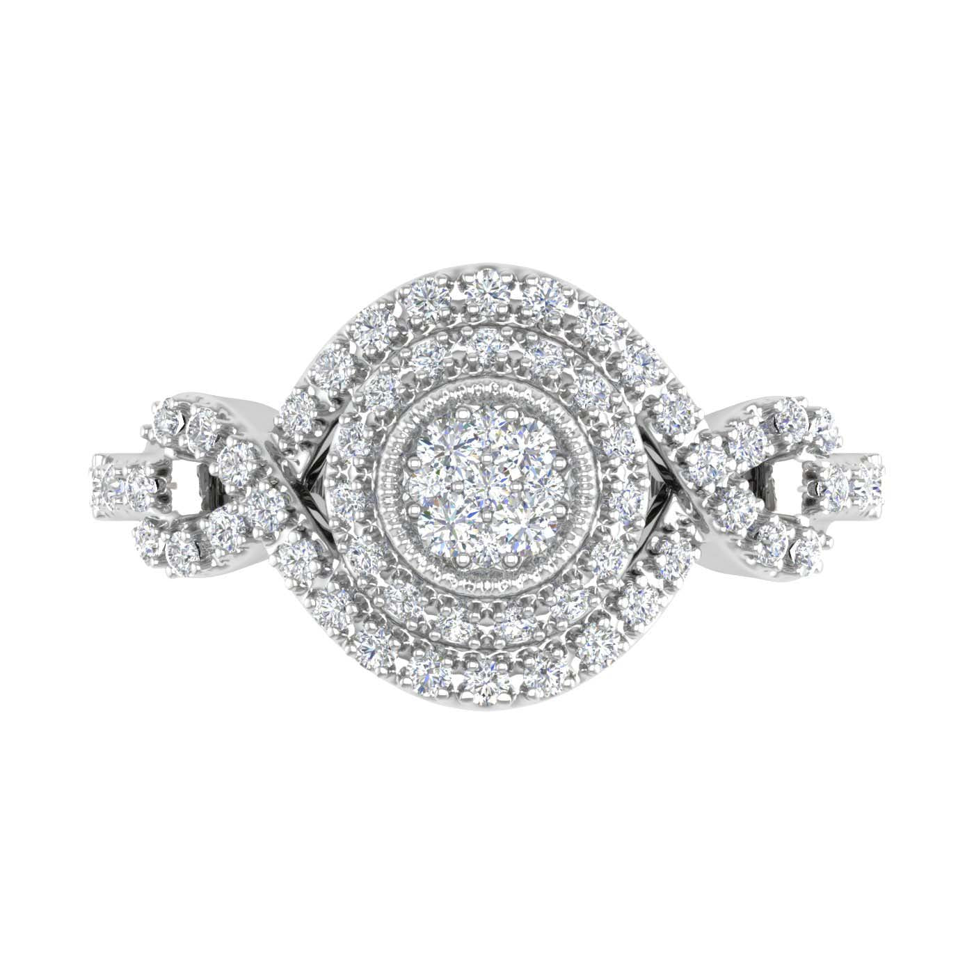3/8 Carat Prong Set Diamond Twisted Halo Engagement Ring in Gold - IGI Certified
