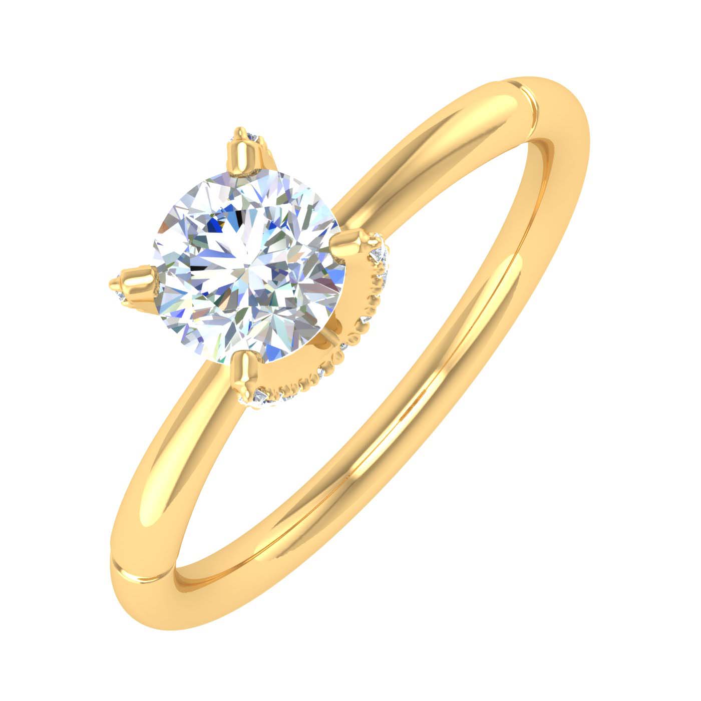 To keep this ring superlight on fingers, we have made it with a hollow tube, and resizing this ring is not possible. This amazing prong set 4 prong diamond solitaire engagement ring is the most perfect diamond jewelry for celebrating one of the most special dates in your life with your loved one. It is rendered beautifully in lustrous 14K gold with glowing icy white diamonds of 5/8 carat weight which emits a radiance of its own. An example of best in class craftsmanship this ring is a must have for everyone.