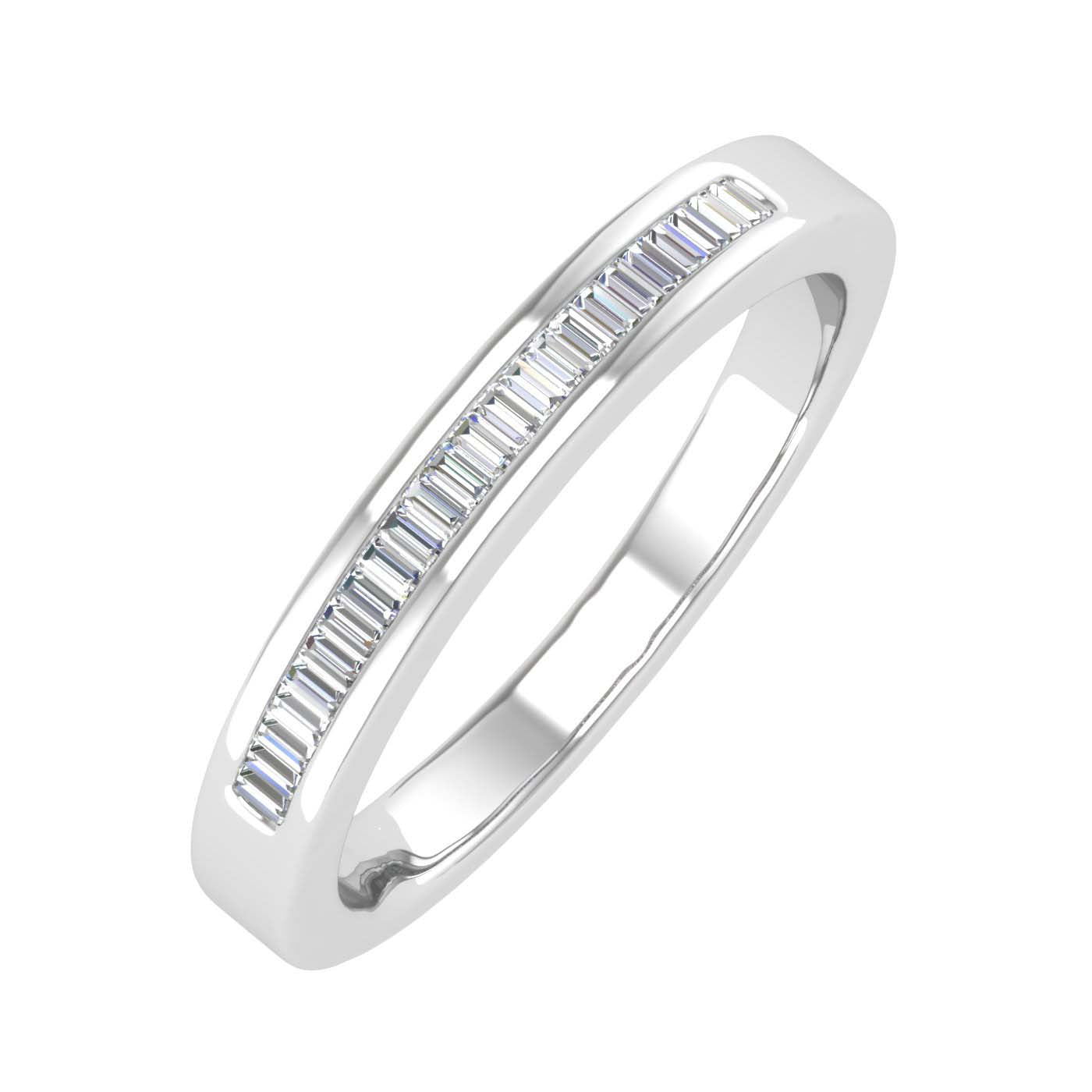 This elegant and classical wedding diamond ring is gorgeously rendered in 14K gold and it features 24 baguette shaped diamonds of 0.16 carat weight which are channel set .